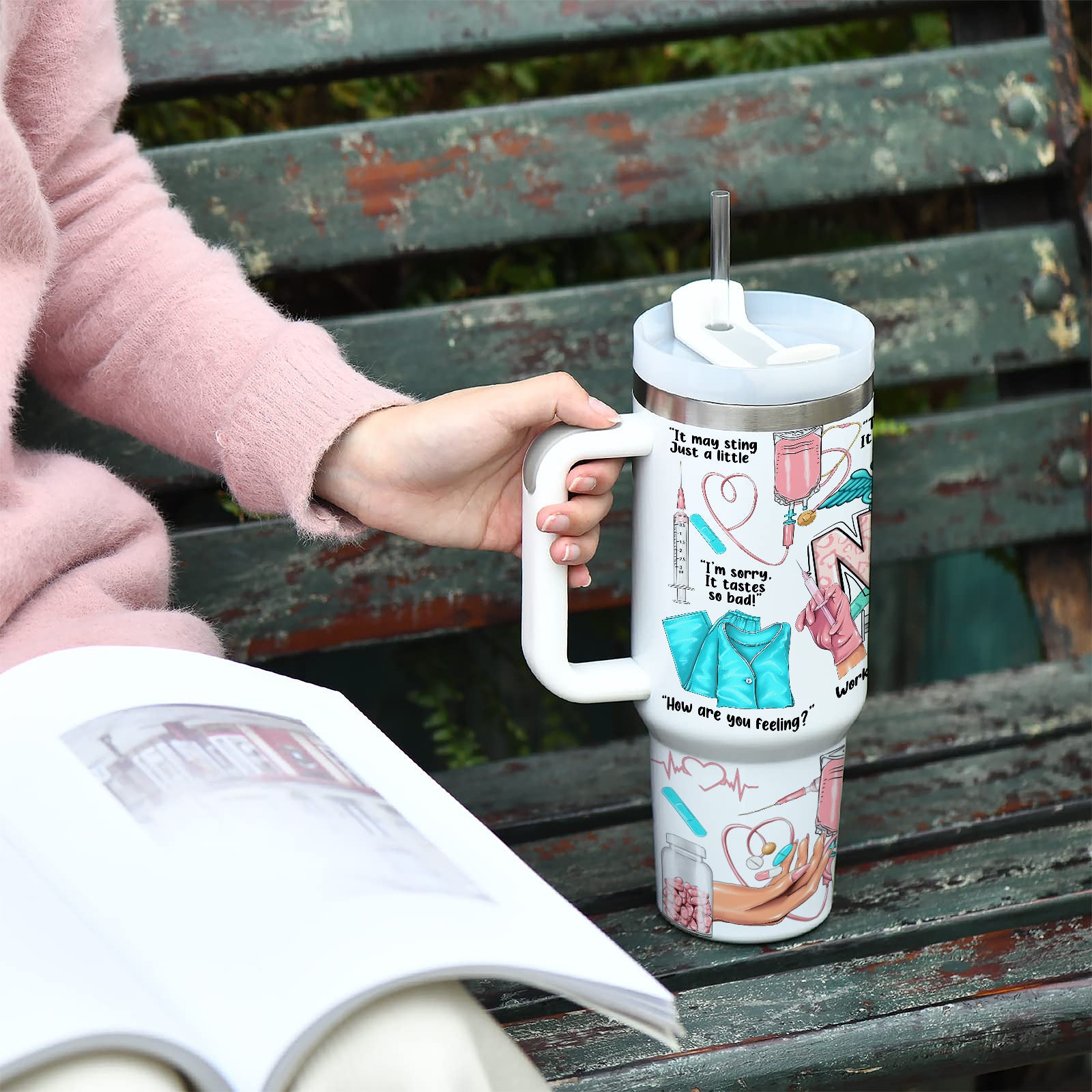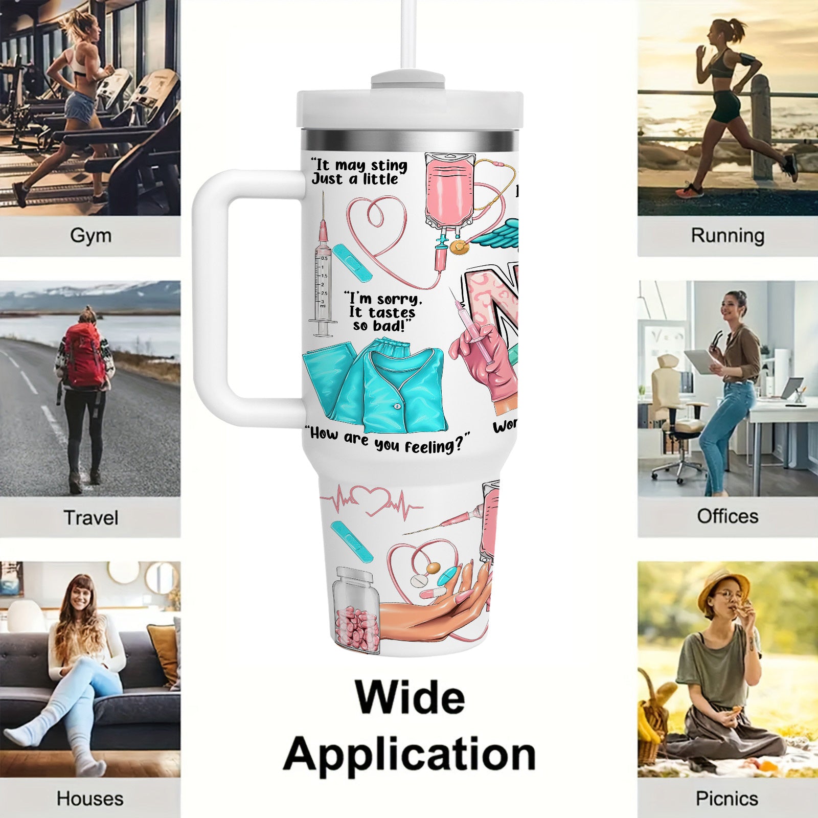 1pc Gift for Nurse 40oz Vacuum Insulated Water Bottle with Handle, Quencher Tumbler, 304 Stainless Steel, Keeps Cold for 24 Hours, BPA-Free, Portable Drinking Cup, for Car, Home, Office, Summer Winter Drinkware, Travel Access
