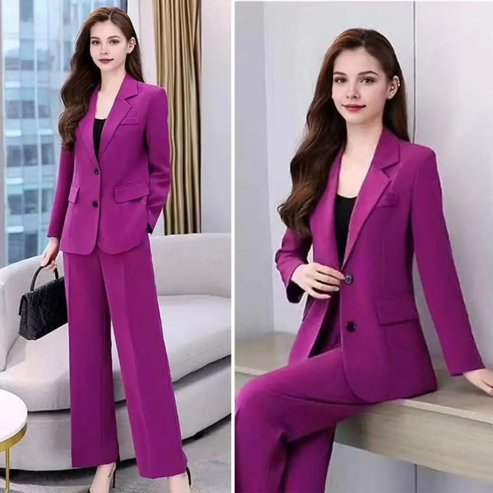 Chic and Functional Design: The neat seams at the waist and hips flatter your figure by accentuating the tummy and waist area. The single-breasted jacket adds a touch of sophistication, while the wide-leg pants provide a modern twist to classic office attire.