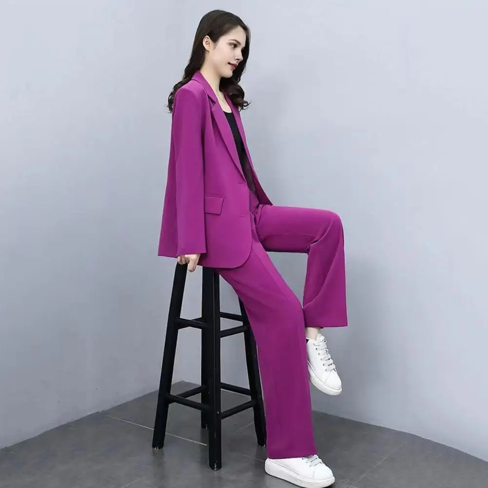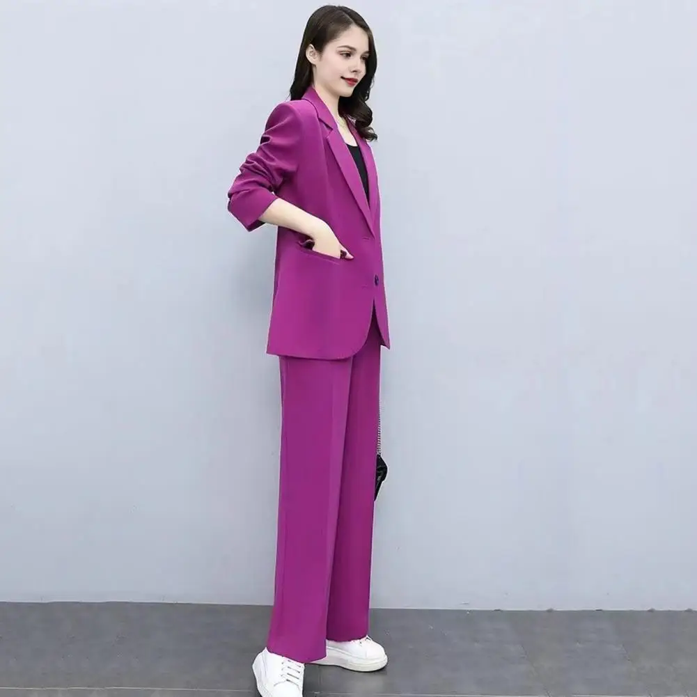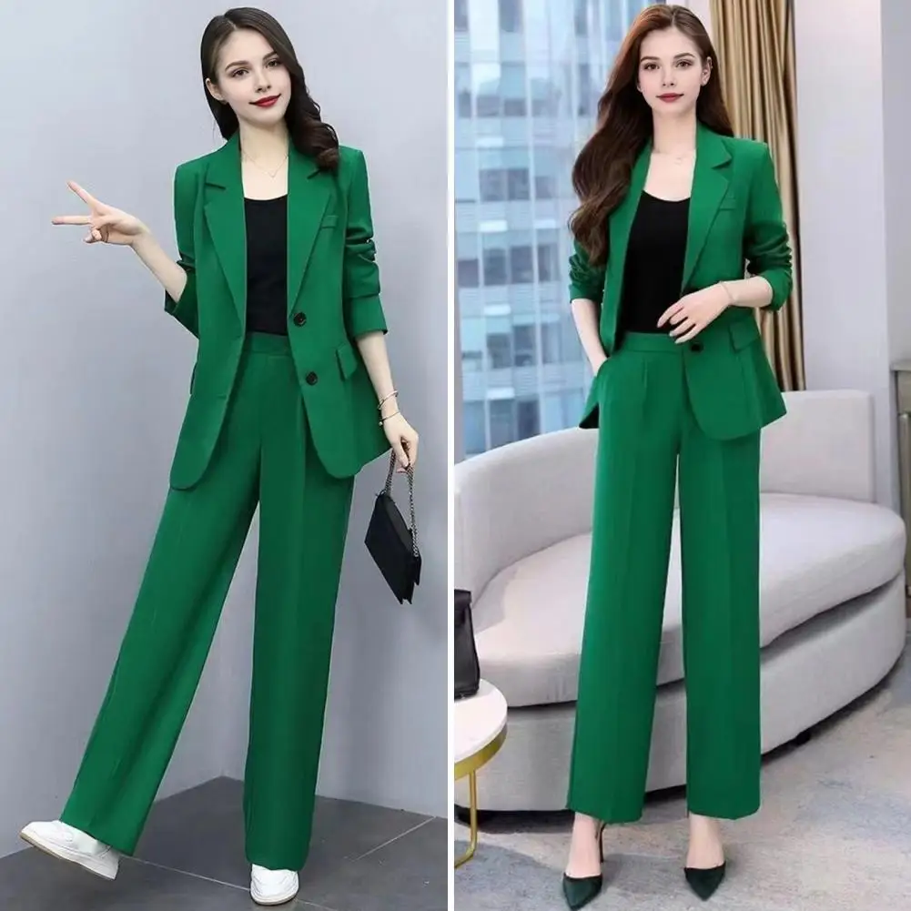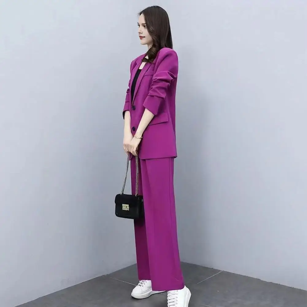 Autumn Women Blazer Pants Set 2025 Spring Lapel Single Button Blazer Coat Wide Leg High Waist Straight Leg Pants Suit