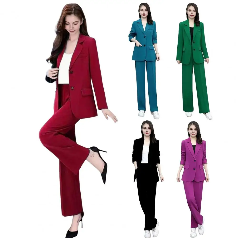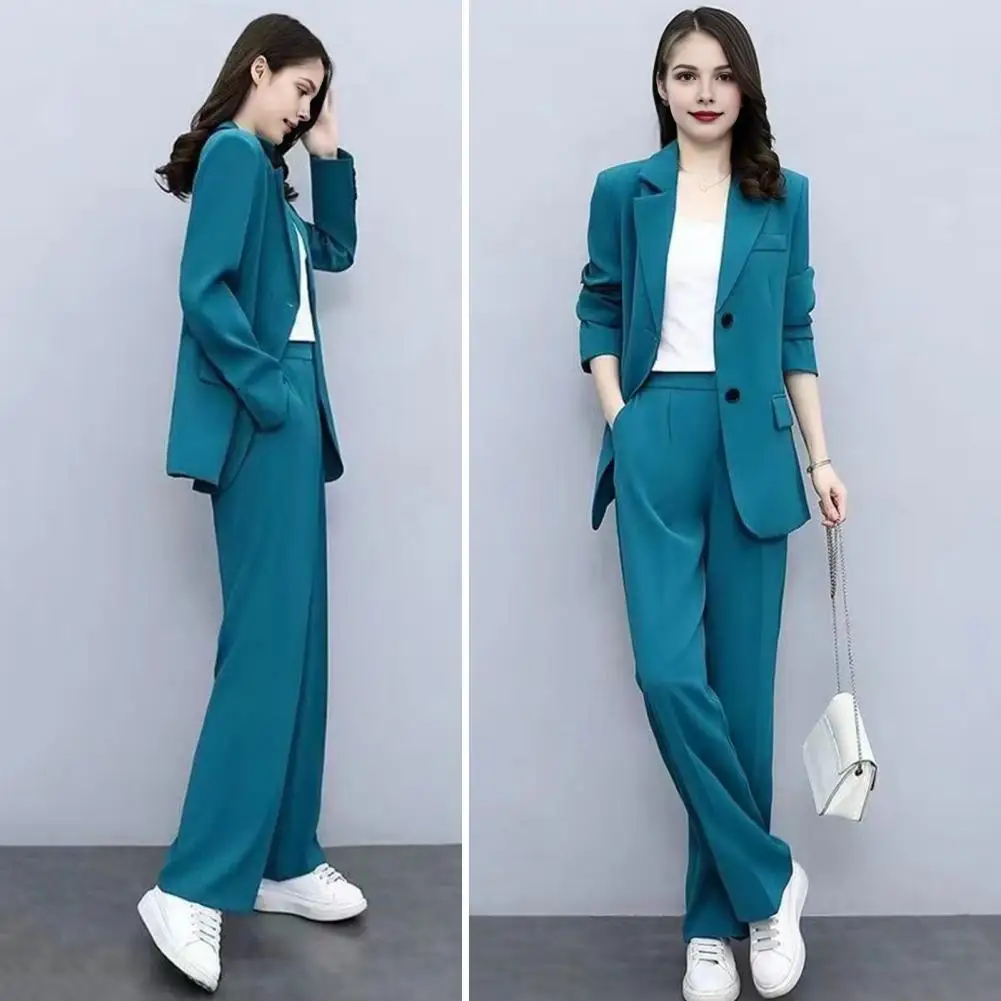Elegant 2-Piece Set: This sophisticated 2-piece set includes a stylish jacket and wide-leg pants, perfect for both casual and formal wear. The jacket features lapels, long sleeves, and decorative pockets, exuding an OL commuter style, while the pants are designed to elongate your legs with their wide-leg silhouette.