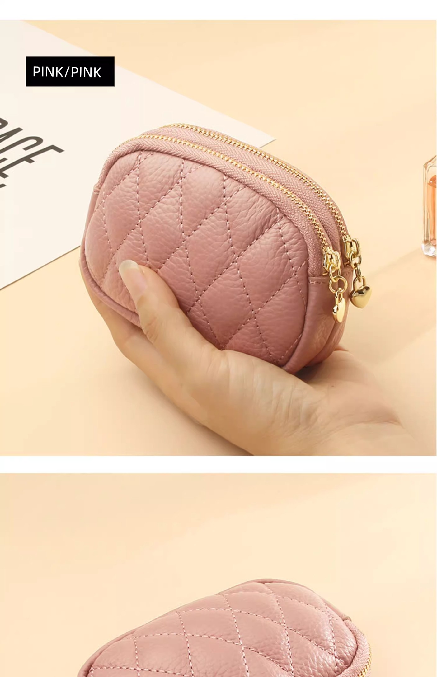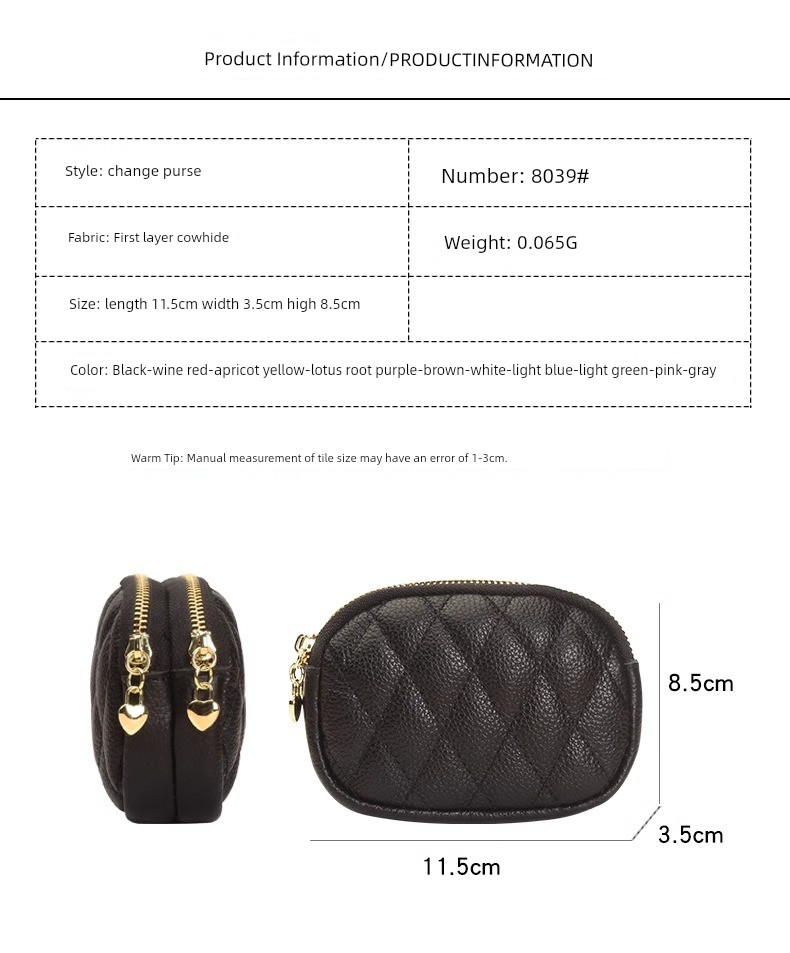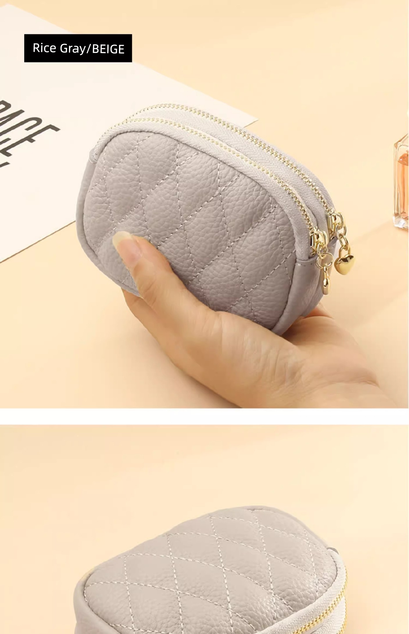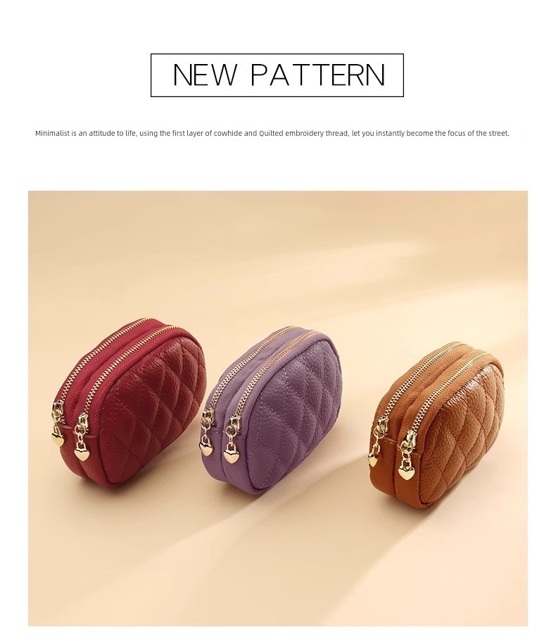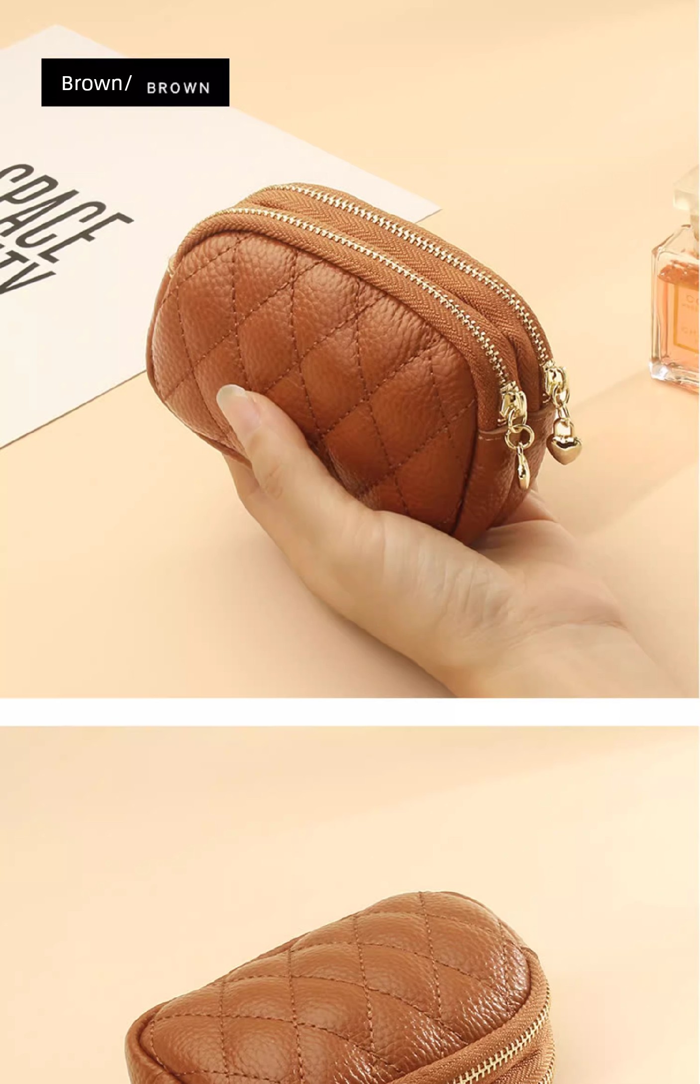 2024 New Arrival First Layer Cowhide Quilted Embroidery Thread Key Ring Buckle Coin Bag Double Layer Zipper Genuine Leather Mini Purse Women