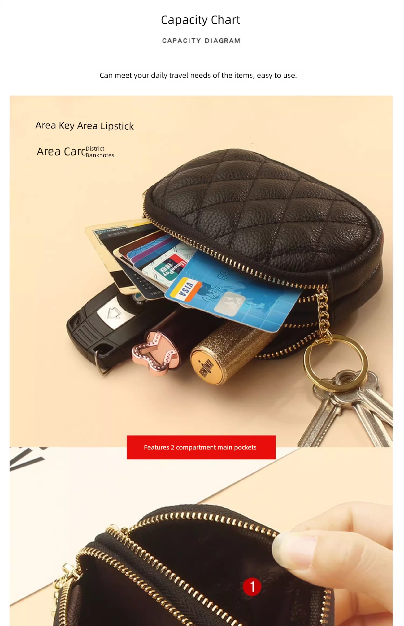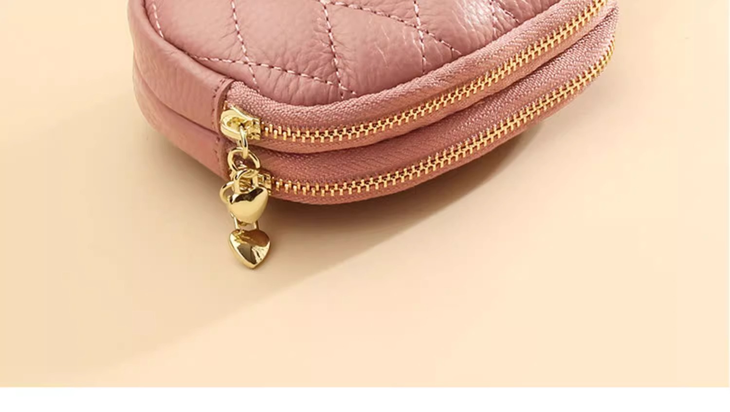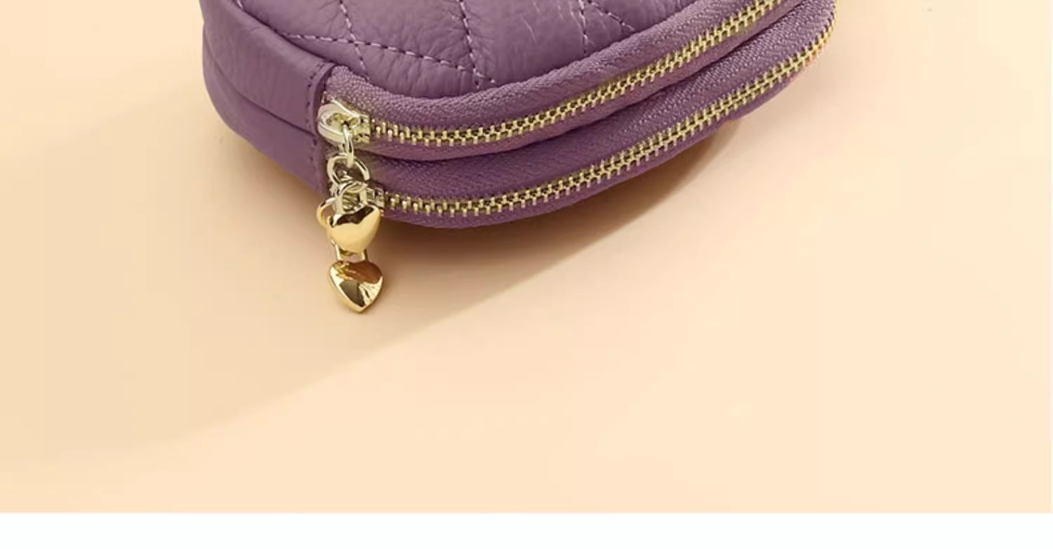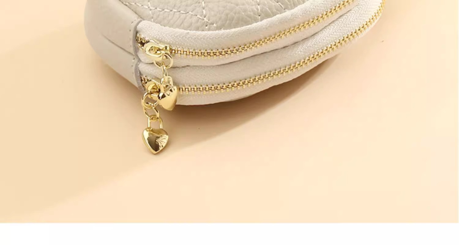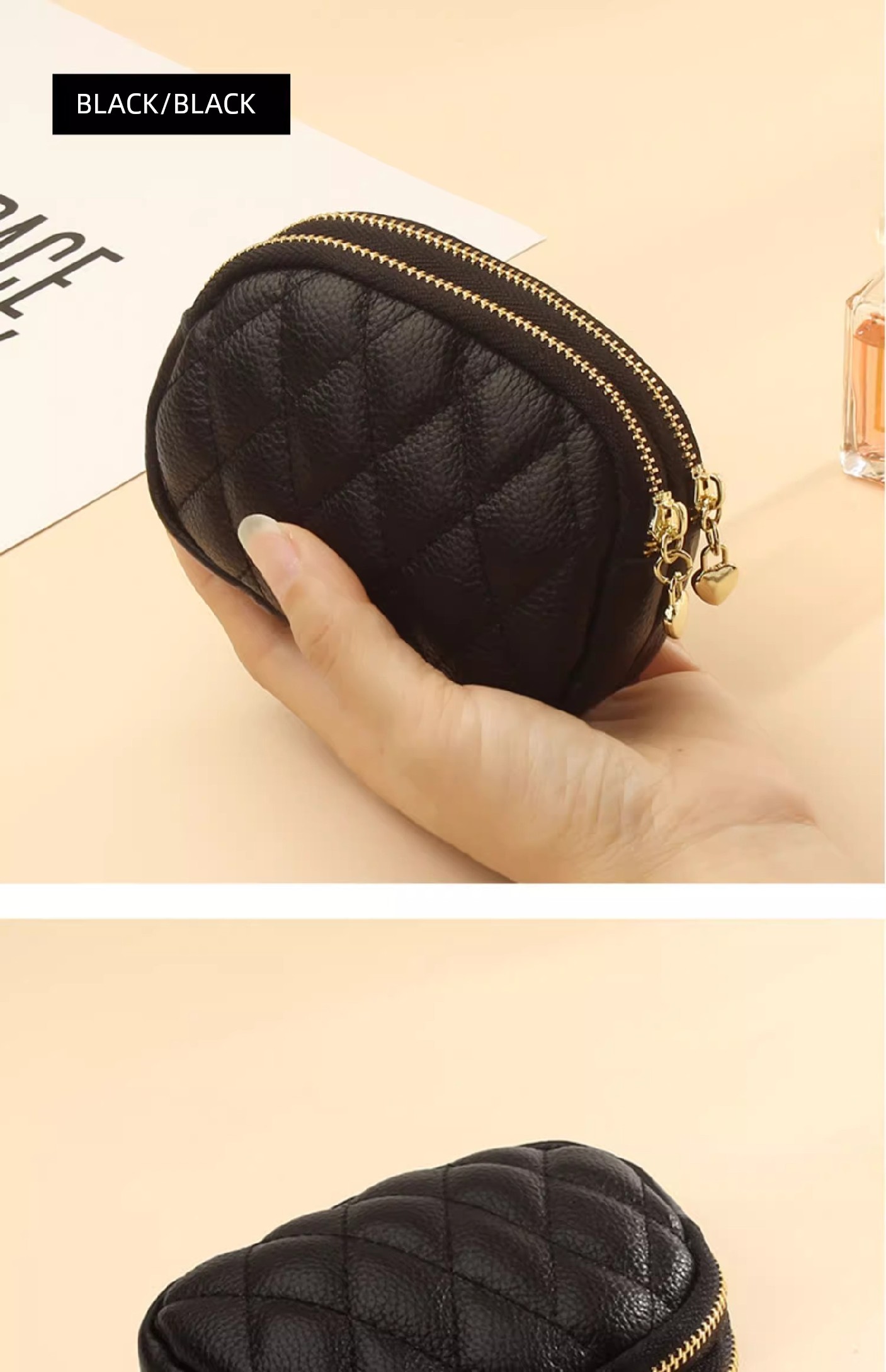 2024 New Arrival First Layer Cowhide Quilted Embroidery Thread Key Ring Buckle Coin Bag Double Layer Zipper Genuine Leather Mini Purse Women