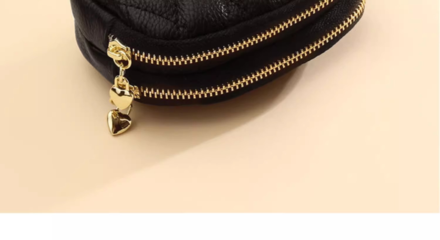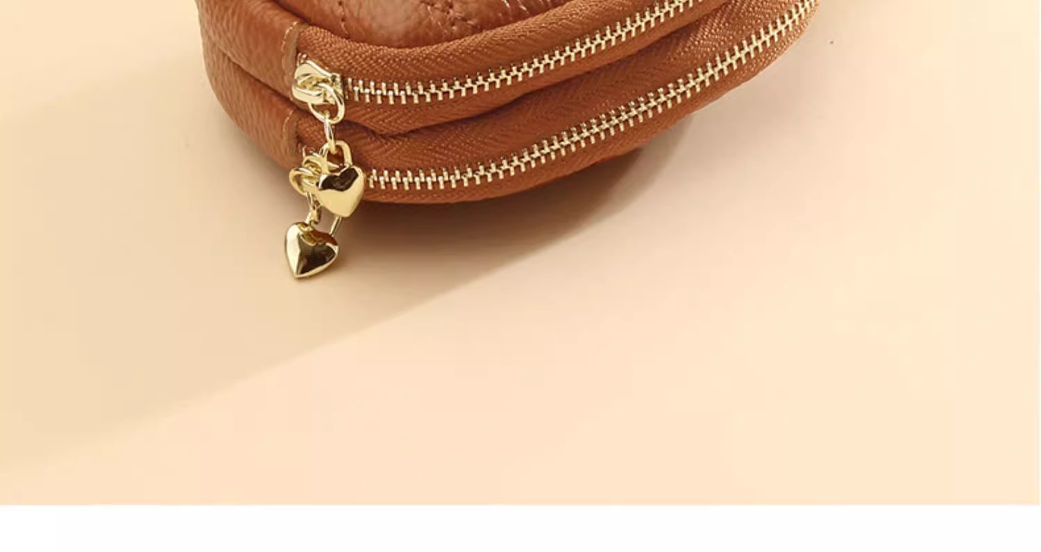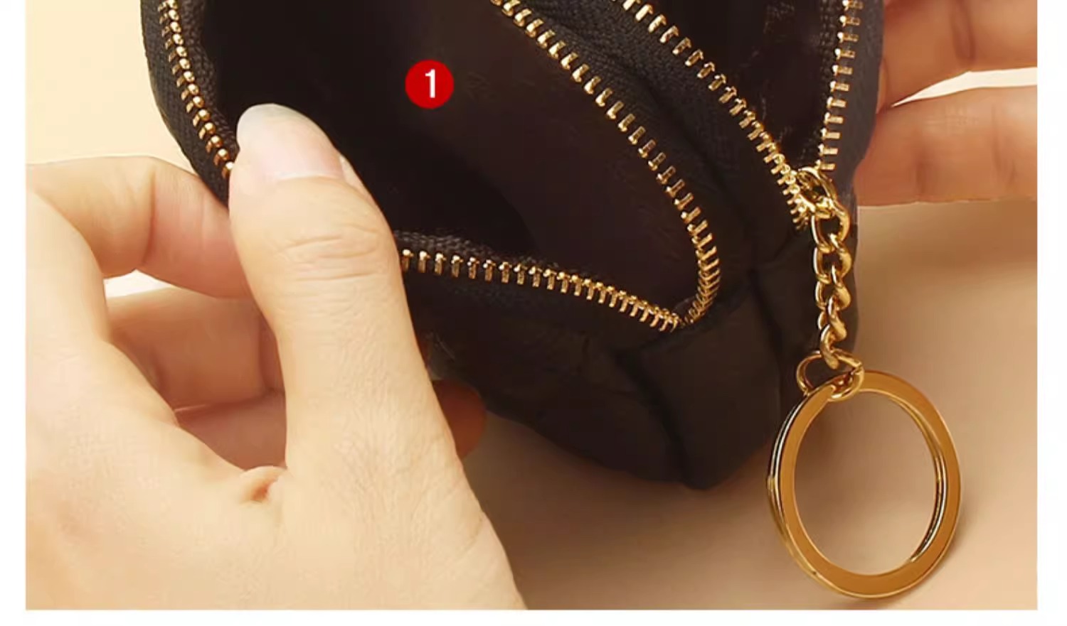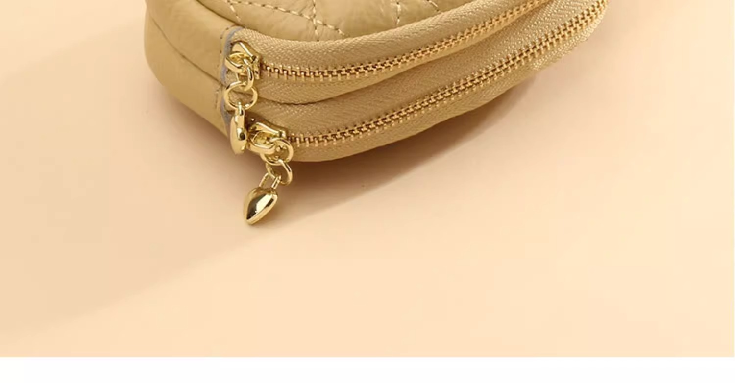 2024 New Arrival First Layer Cowhide Quilted Embroidery Thread Key Ring Buckle Coin Bag Double Layer Zipper Genuine Leather Mini Purse Women