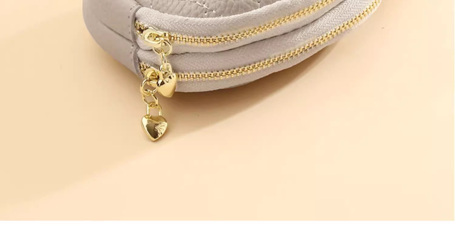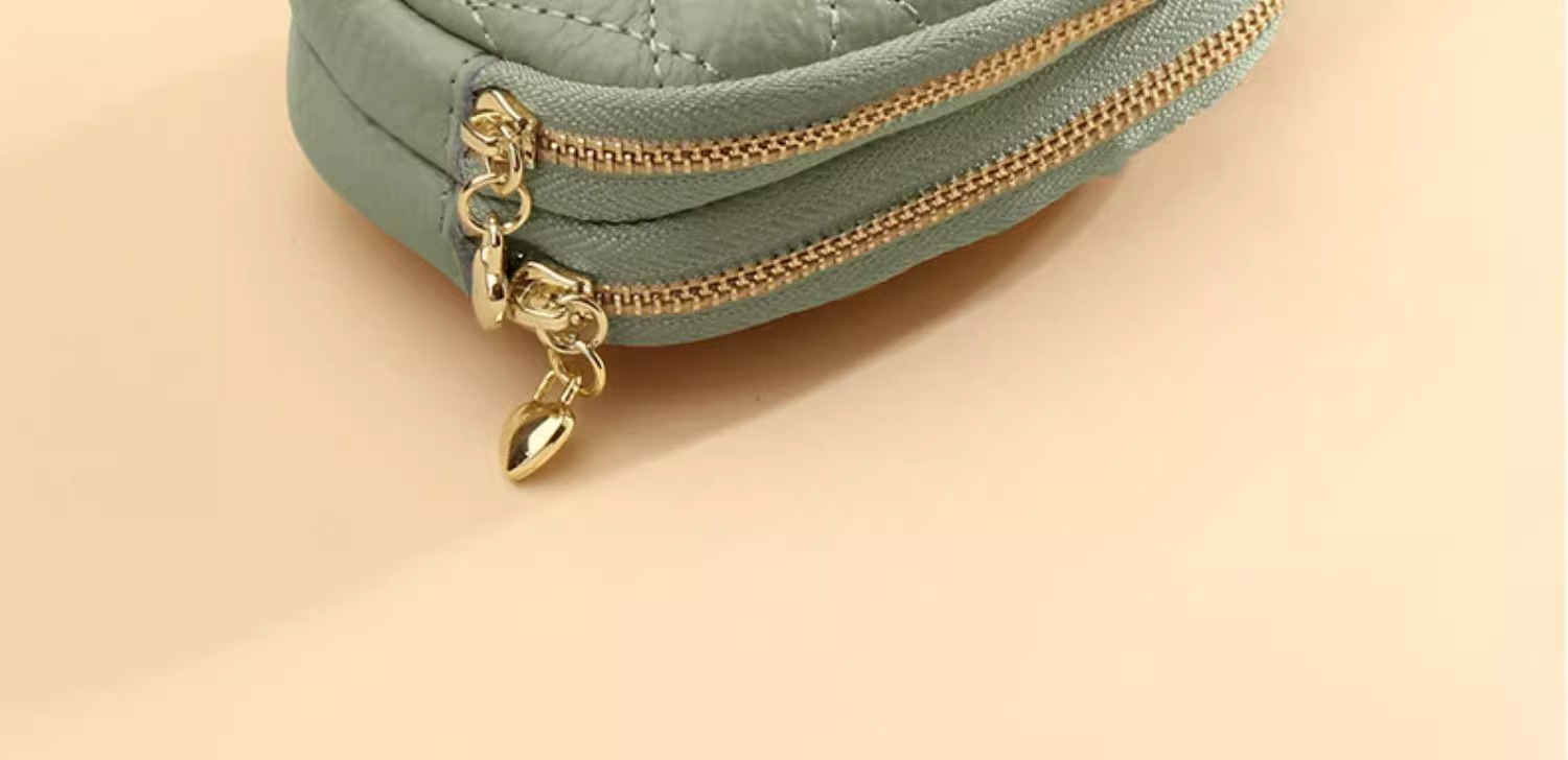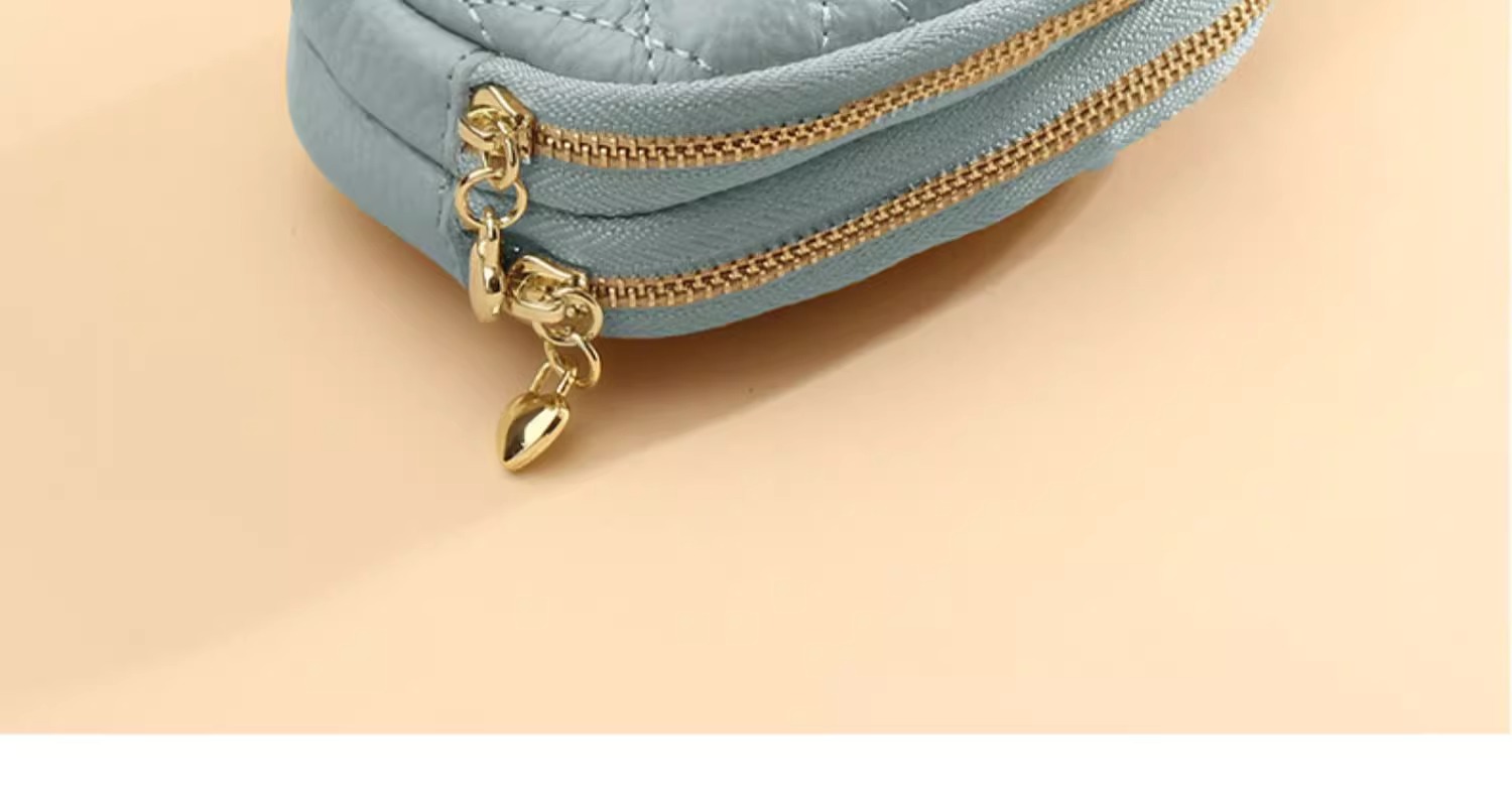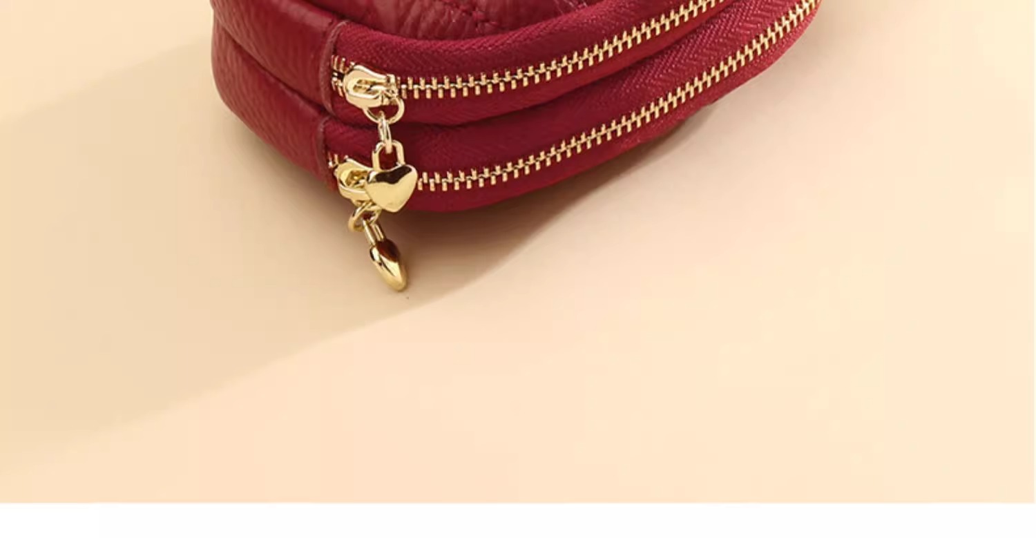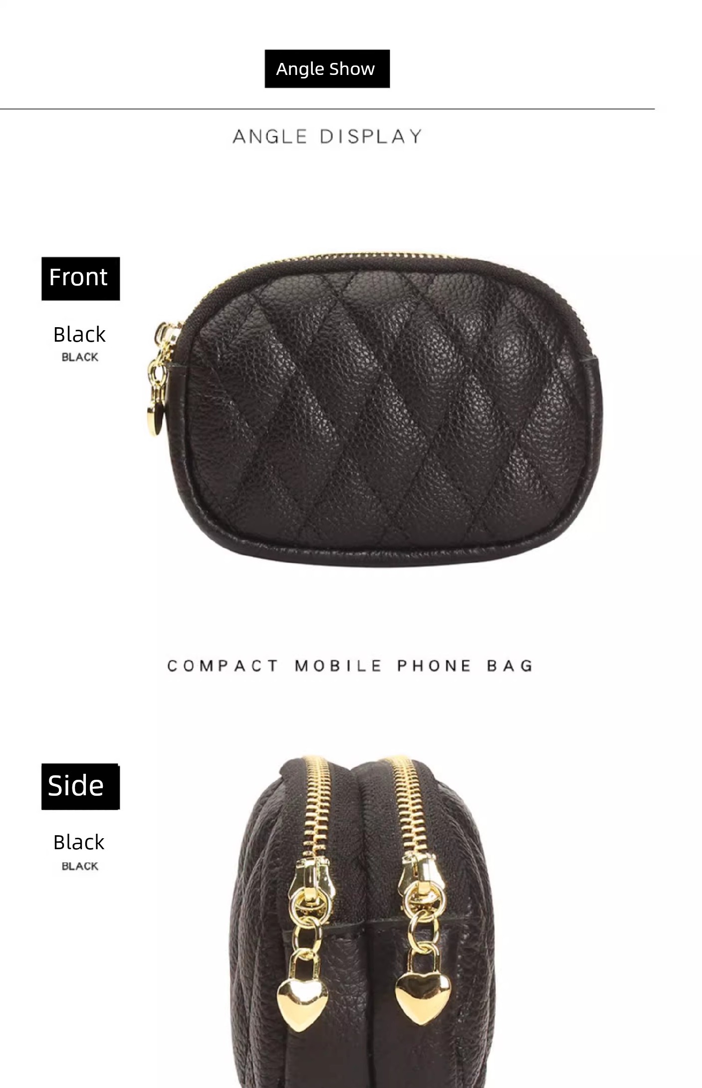 2024 New Arrival First Layer Cowhide Quilted Embroidery Thread Key Ring Buckle Coin Bag Double Layer Zipper Genuine Leather Mini Purse Women