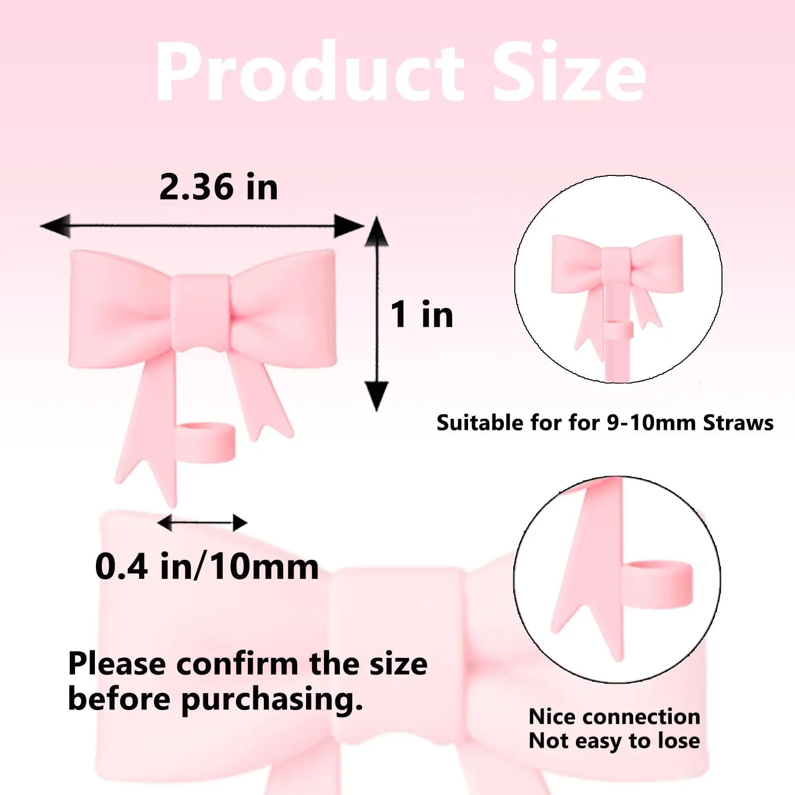 3 Pcs Classic Pink Bow Straw Covers Cap Toppers Compatible with Stanley 30&40 oz Tumbler Cups,Reusable Cute Silicone Straw Tips Lids Protectors for 0.4 in/10mm Stanley Cups Straw Accessories