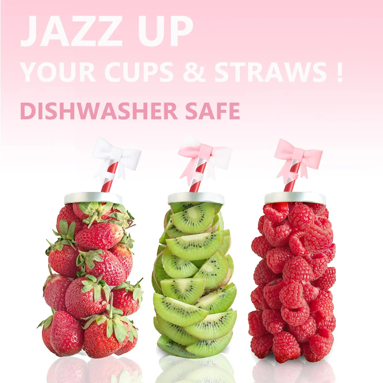 【Gorgeous and well-designed】Include 3 pcs classic cute bow straw covers.The design of different colors makes your cup look cuter and more attractive.You can use them to change a good mood every day.