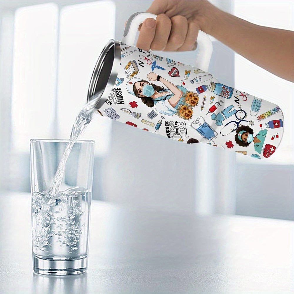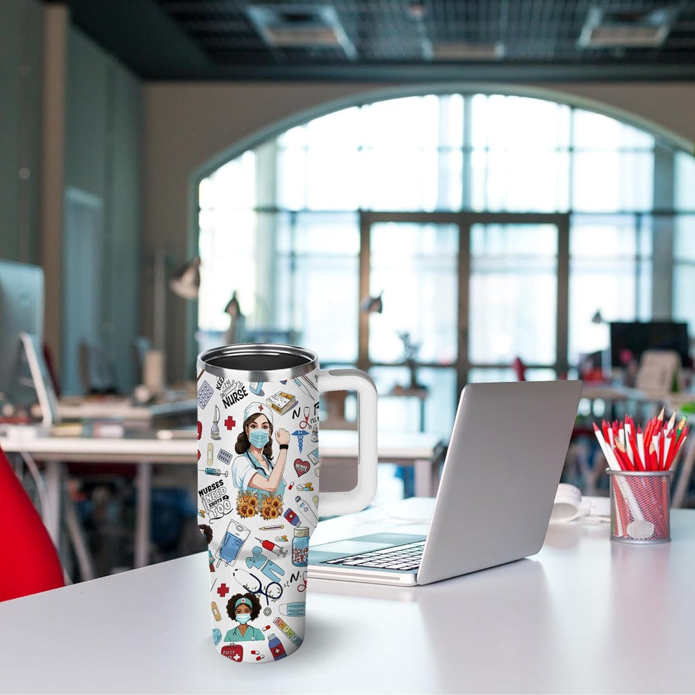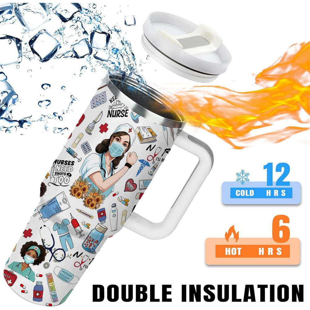 40oz Stainless Steel Nurse Tumbler - Inspirational Nurse Appreciation & Graduation Gift, Coffee Travel Mug with Humorous Medical Illustrations, Durable 304 Stainless Steel