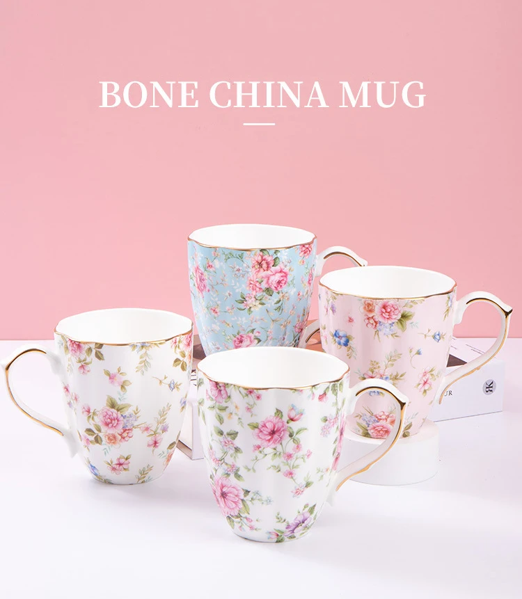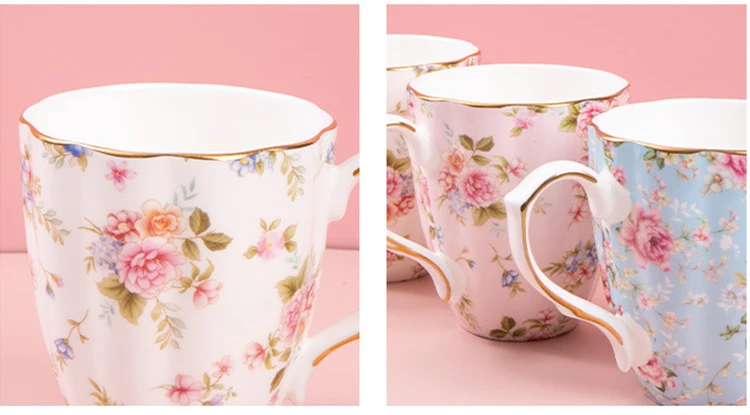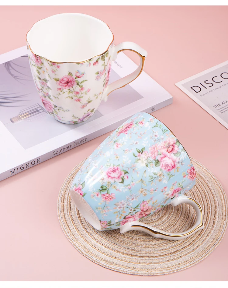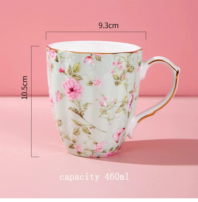 460ML Pumpkin-shaped Ceramic Mug Full cup of flower pattern Coffee Cup Big capacity Breakfast Milk tea cups Gift For Kids Girls