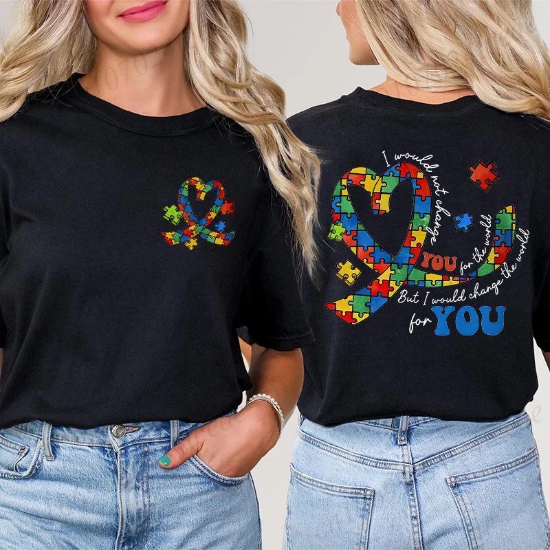 Autism Awareness Month Women T-Shirt Neurodiversity ADHD Tees Shirt Autism Teacher Mom Gift Short Sleeve Tops Female Clothing