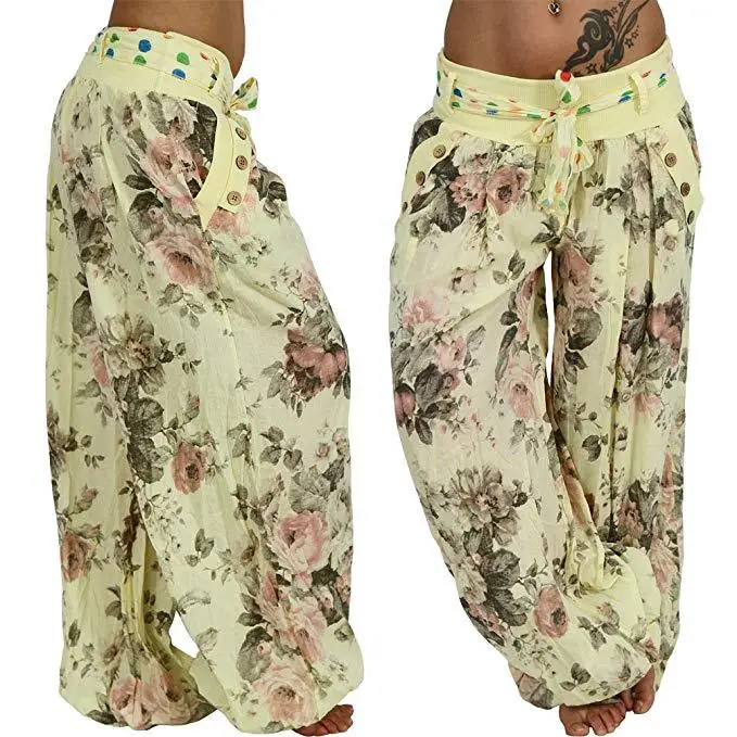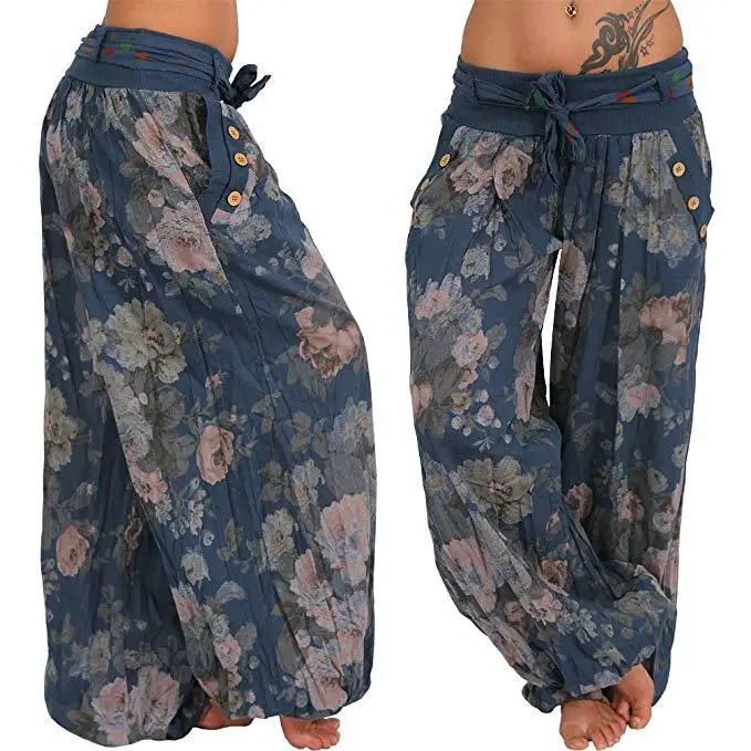 Autumn and winter women's clothing long Haren pants new digital print long wide leg pants Haren casual pants casual plus size