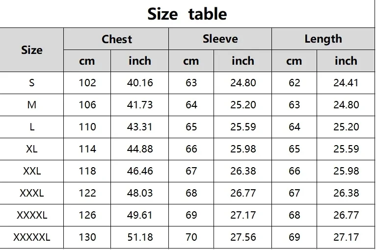 size_info: {"sizeInfoList":[{"length":{"cm":"102","inch":"40.16"},"size":"S","vid":-1},{"length":{"cm":"106","inch":"41.73"},"size":"M","vid":-2},{"length":{"cm":"110","inch":"43.31"},"size":"L","vid":-3},{"length":{"cm":"114","inch":"44.88"},"size":"XL","vid":-4},{"length":{"cm":"118","inch":"46.46"},"size":"XXL","vid":-5},{"length":{"cm":"122","inch":"48.03"},"size":"XXXL","vid":-6}]}