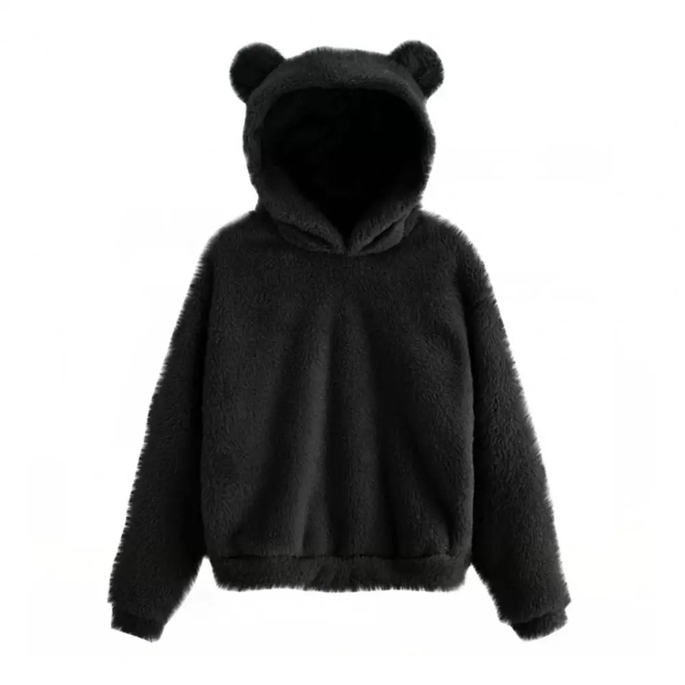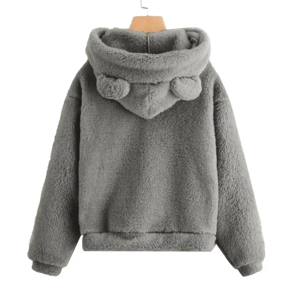 Autumn Winter Women's Hoodies Winter Women Long Sleeve Rabbit Ear Hood Sweatshirt Cute Plush Warm Casual Hoodie Tops