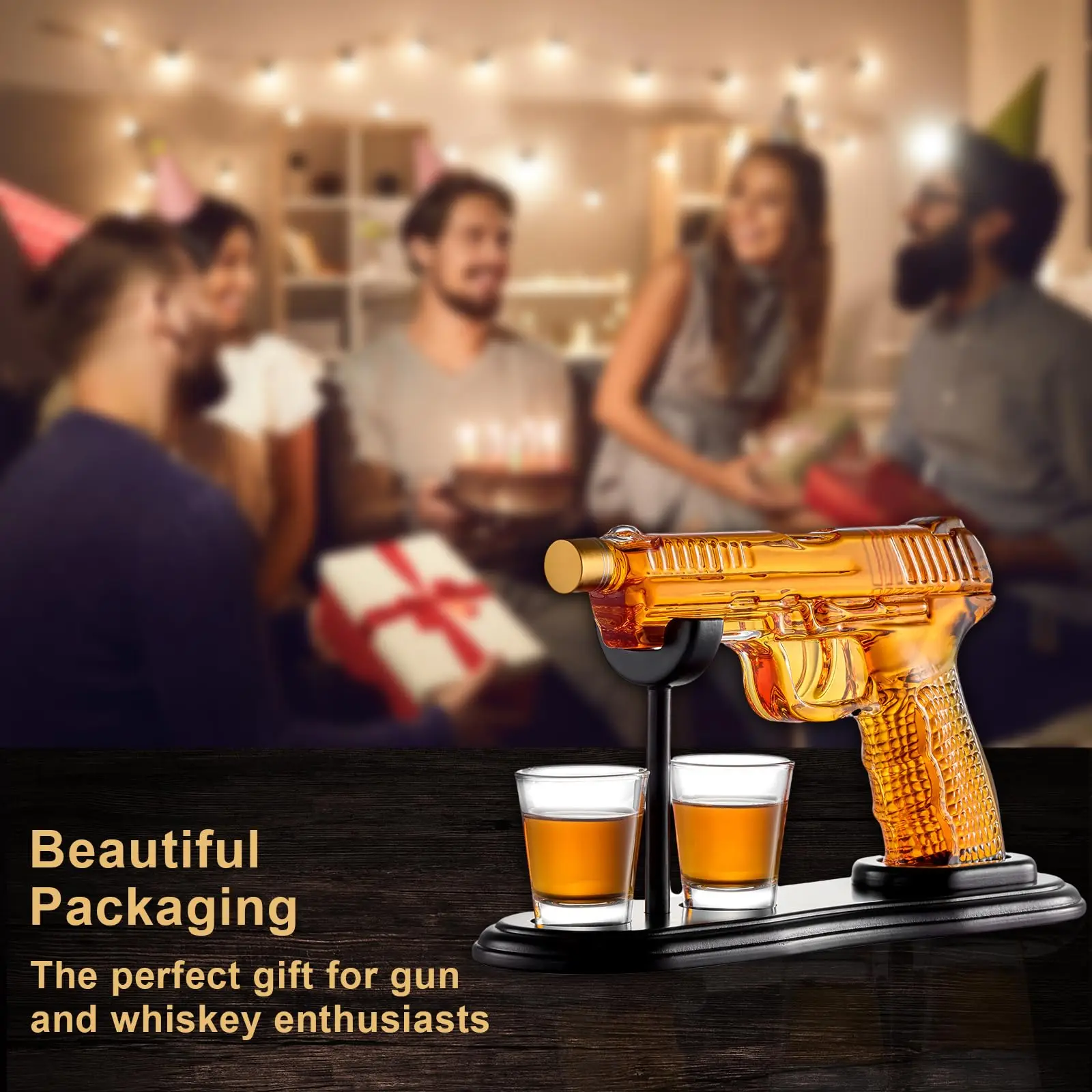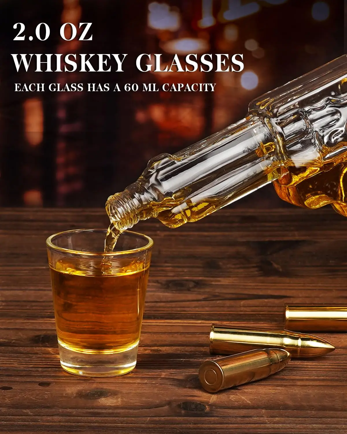 IDEAL GIFT CHOICE: Perfect present for boyfriends, husbands, dads, or any whiskey enthusiast in your life. This gun whiskey decanter set makes an exceptional gift for retirements, weddings, anniversaries, Valentine’s, Christmas, birthdays, and Father’s Day. Enhance any home bar with this unique, personalized decoration that’s sure to impress.