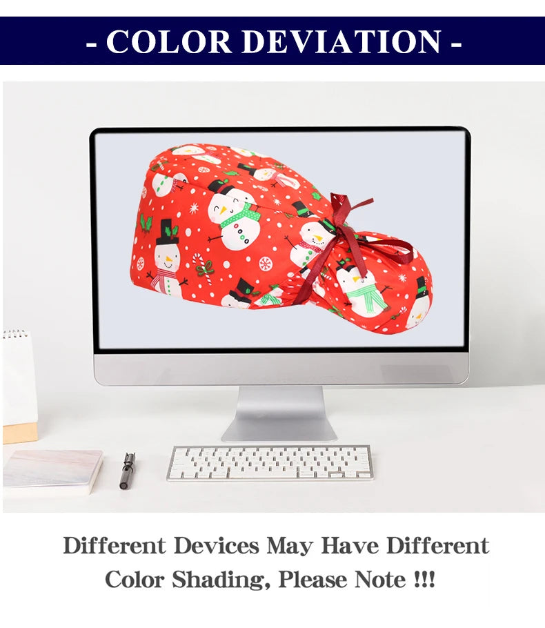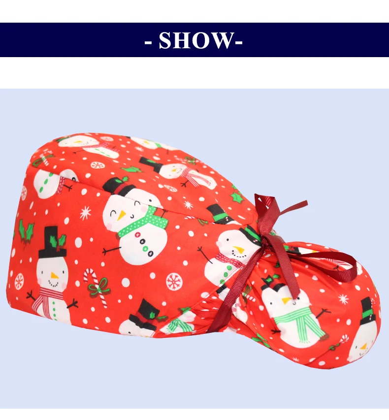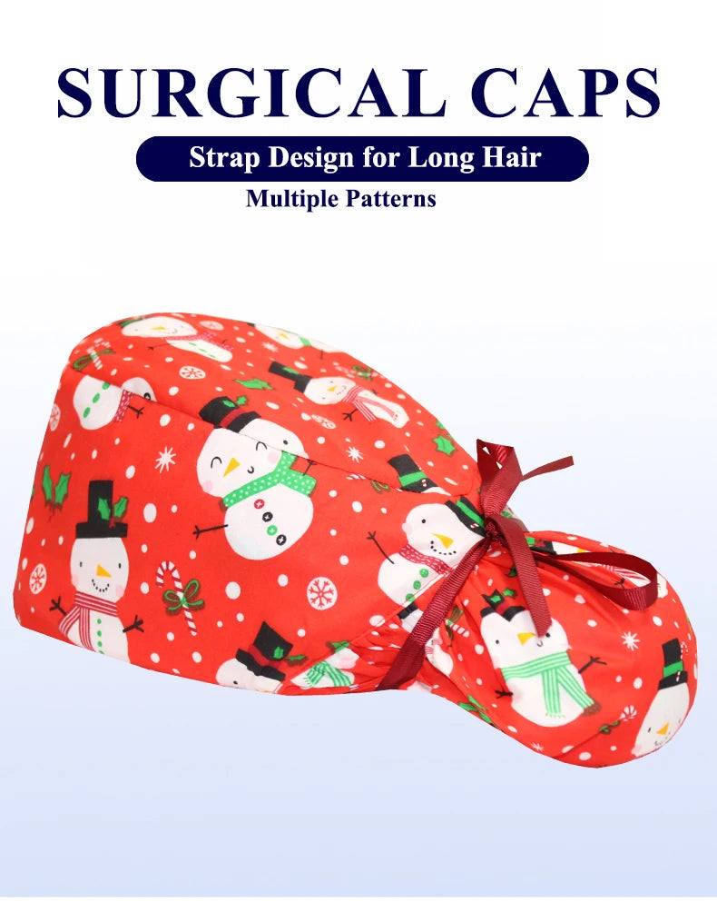 Christmas Snowman Scrub Caps for Long Hair Cotton Surgical Hats Dental Nursing Caps Women Men Hospital Clinic Medical Caps C1093