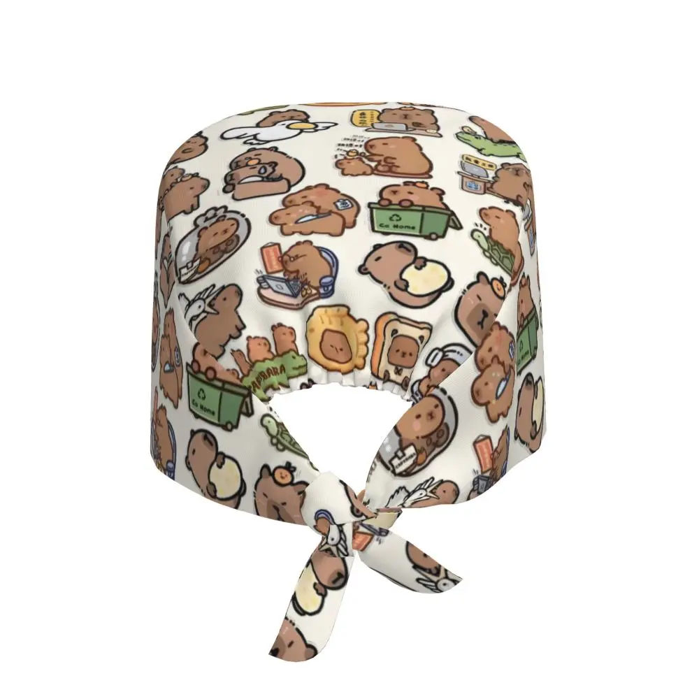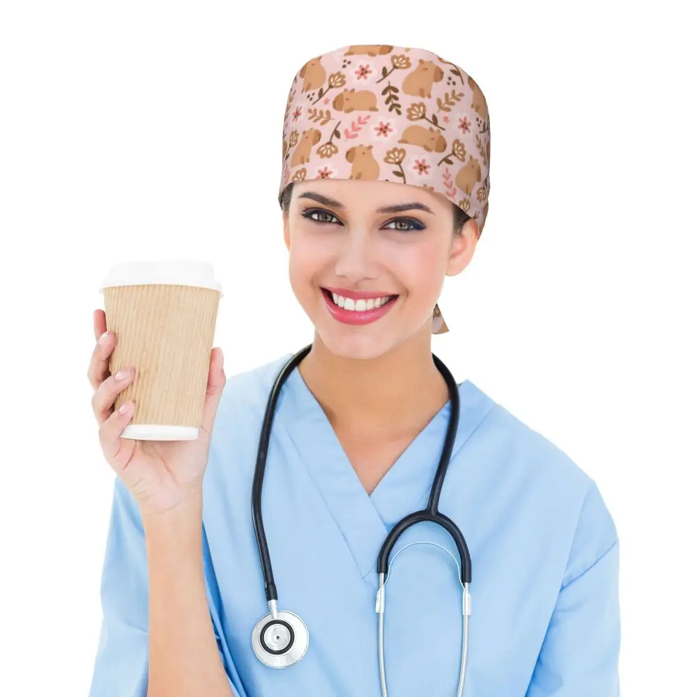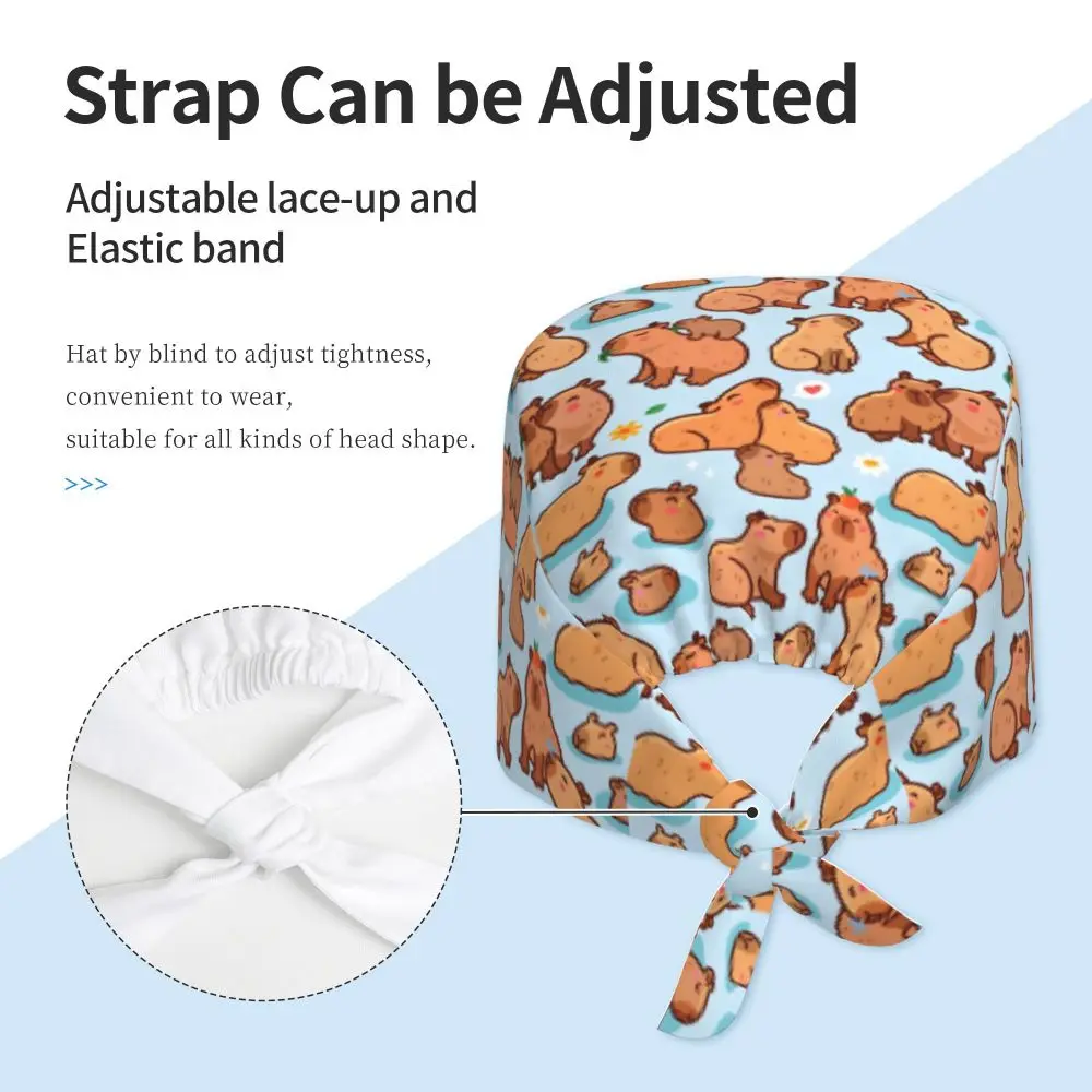Custom Cartoon Capybara Medical Staff Scrubs Hat Women Men Comic Doctor Nursing Surgical Cap Scrub Caps