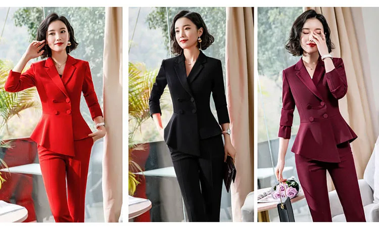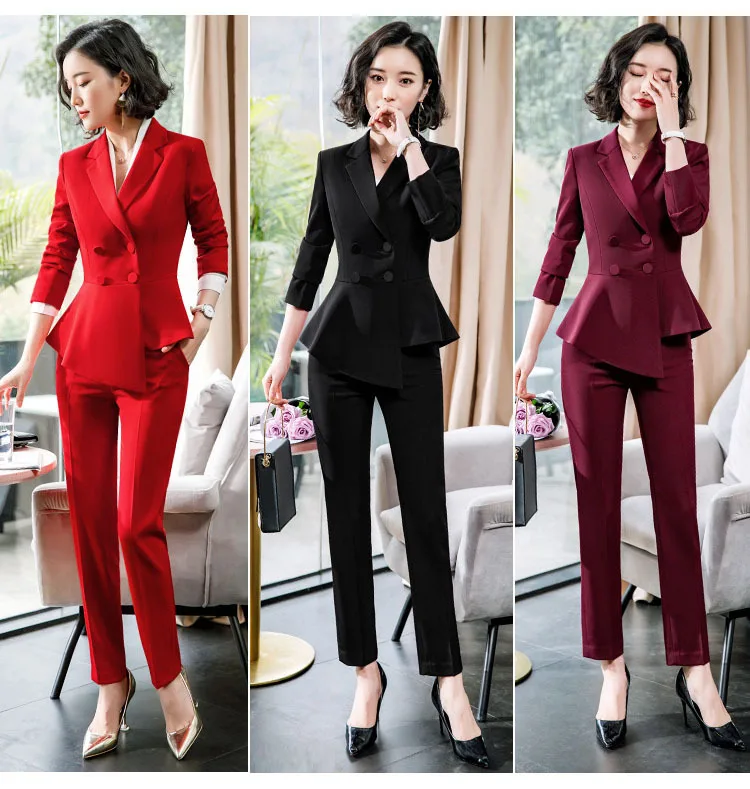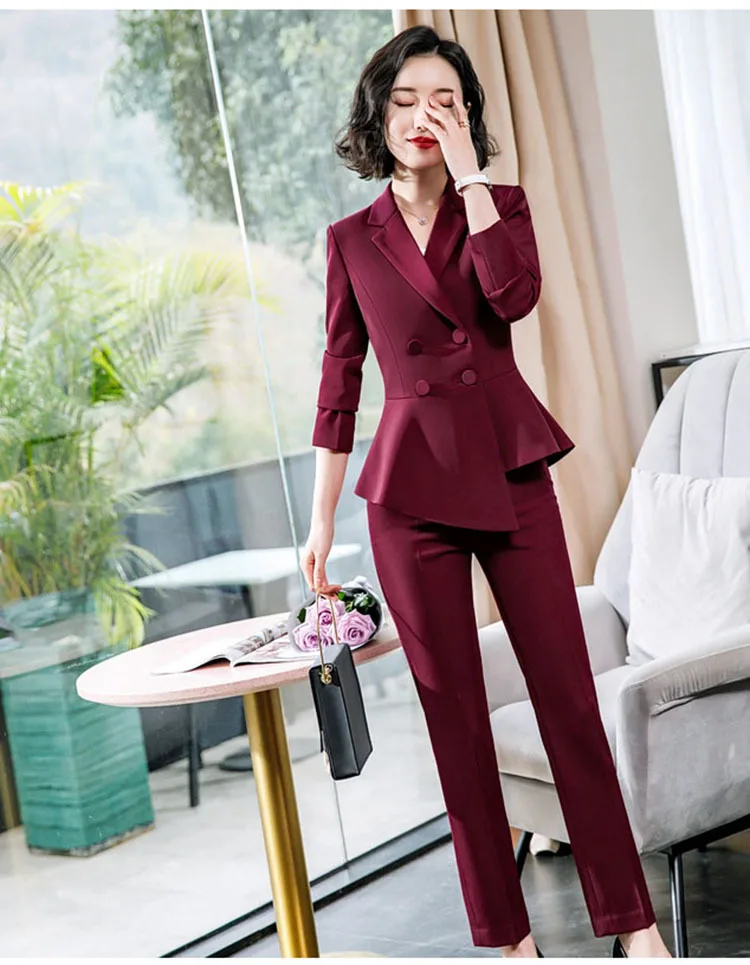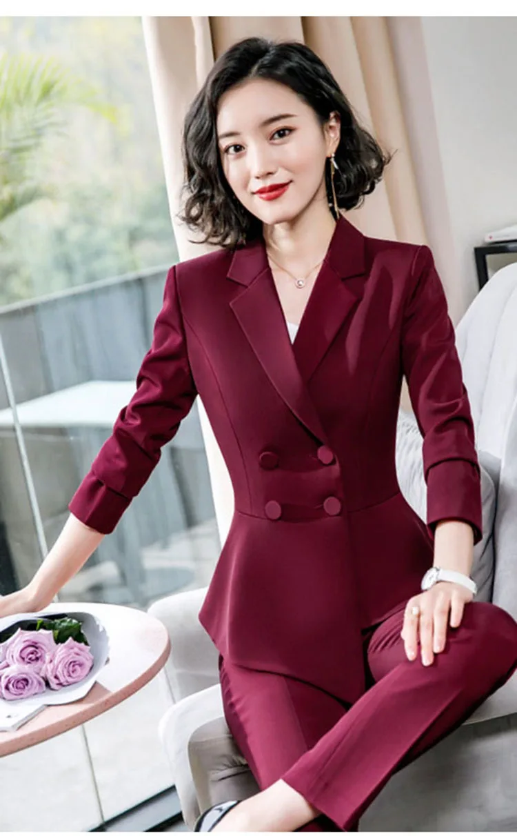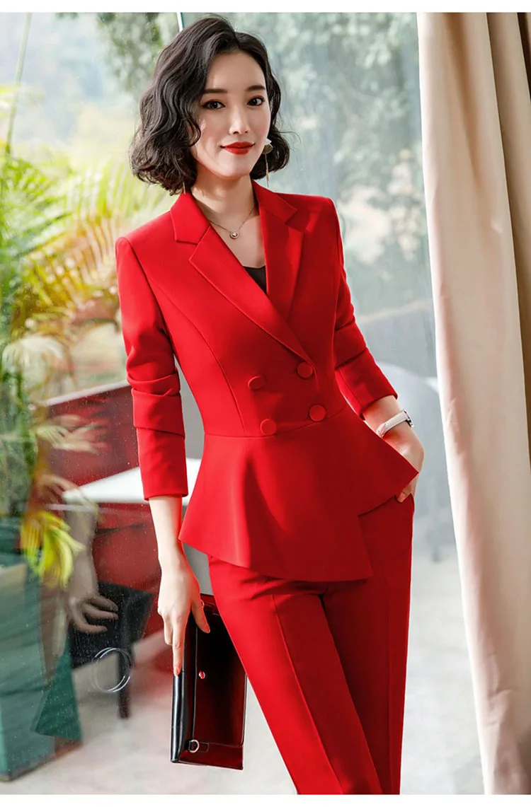 Fashion Red Pant Suits For Women Business Work Wear Formal Outfits Office Lady Blazer Set Elegant 2 Pieces Sets Female 2024 New