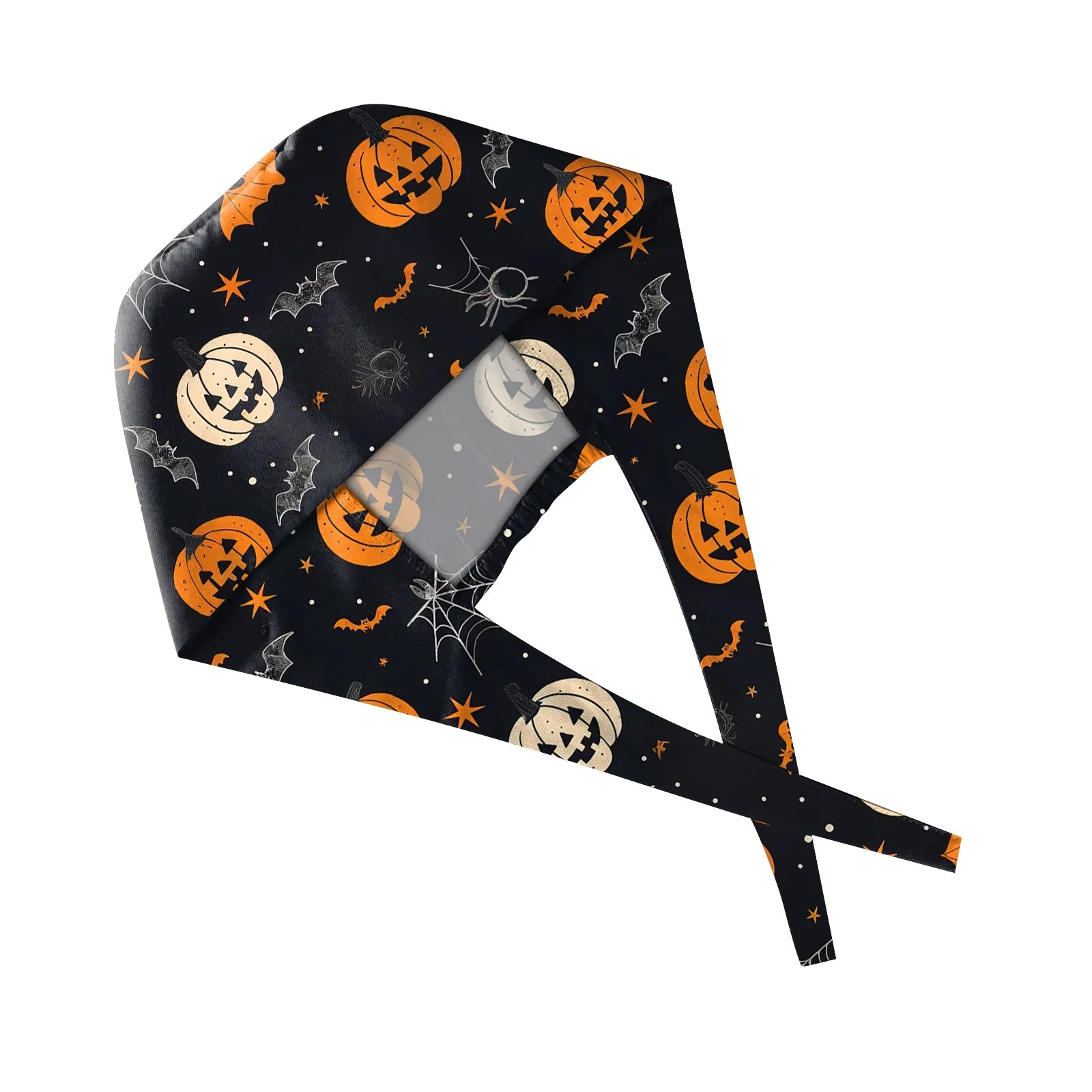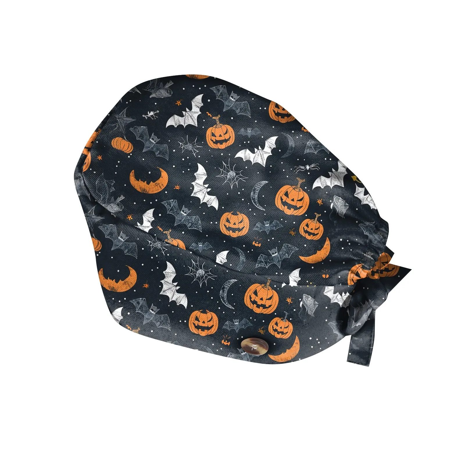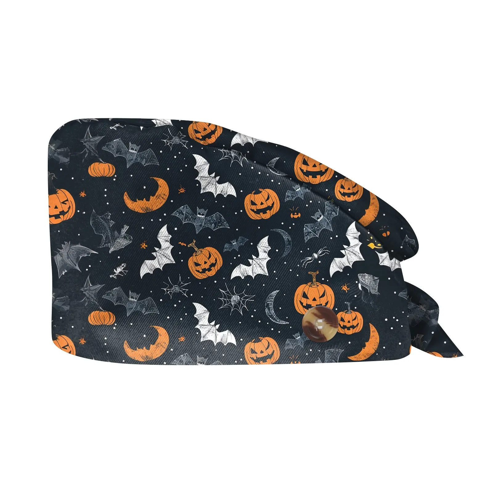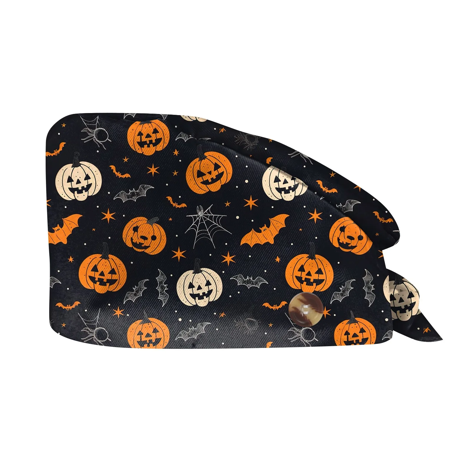 Halloween Print Work Cap Fashionable Casual Women's Printed Elastic Scrub Hat Unisex Work Caps Nurse Accessories Nurse Cap