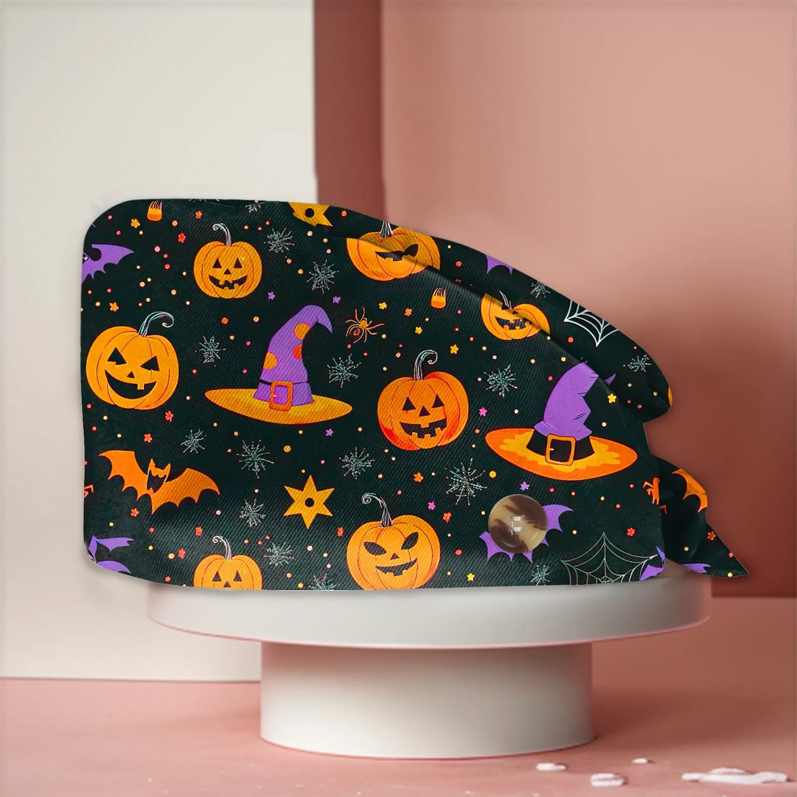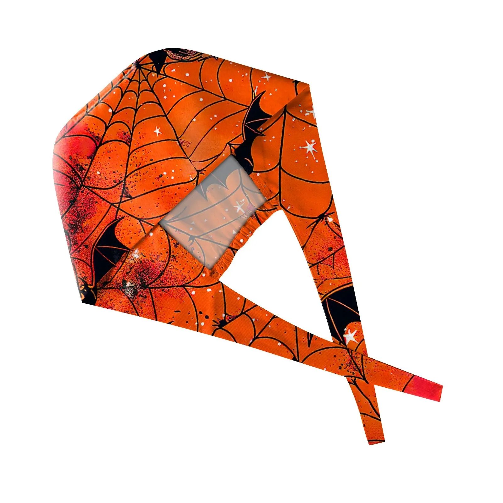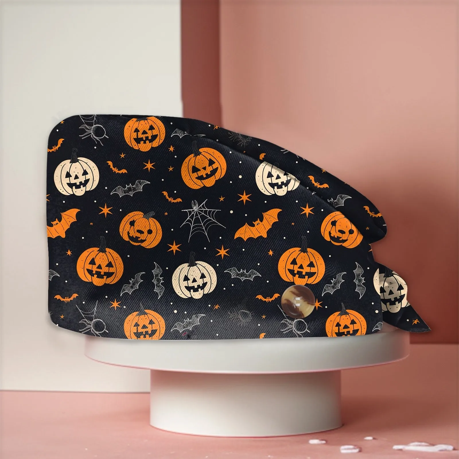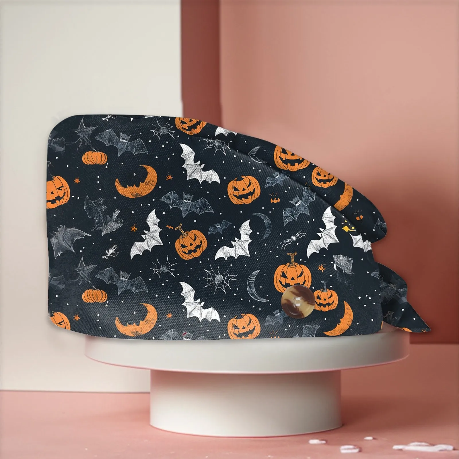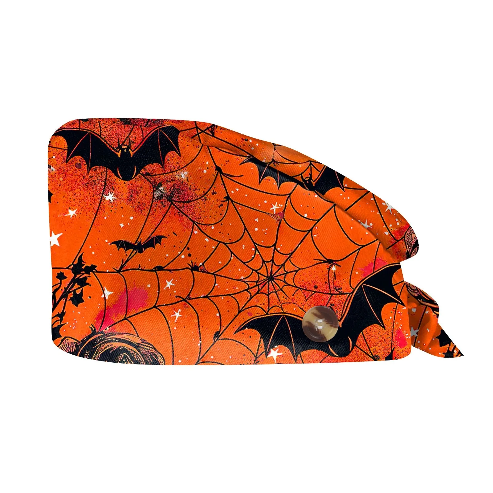 Halloween Print Work Cap Fashionable Casual Women's Printed Elastic Scrub Hat Unisex Work Caps Nurse Accessories Nurse Cap