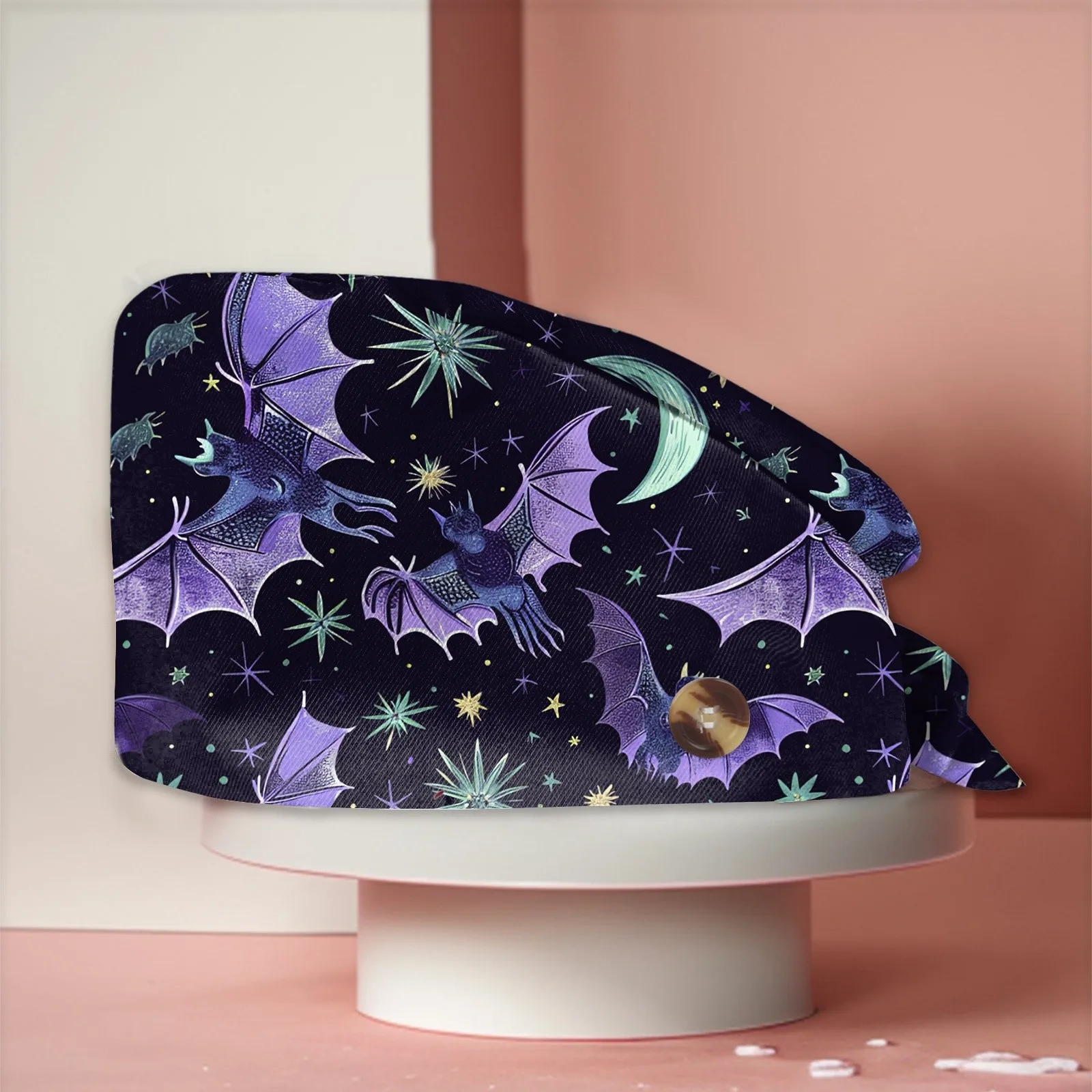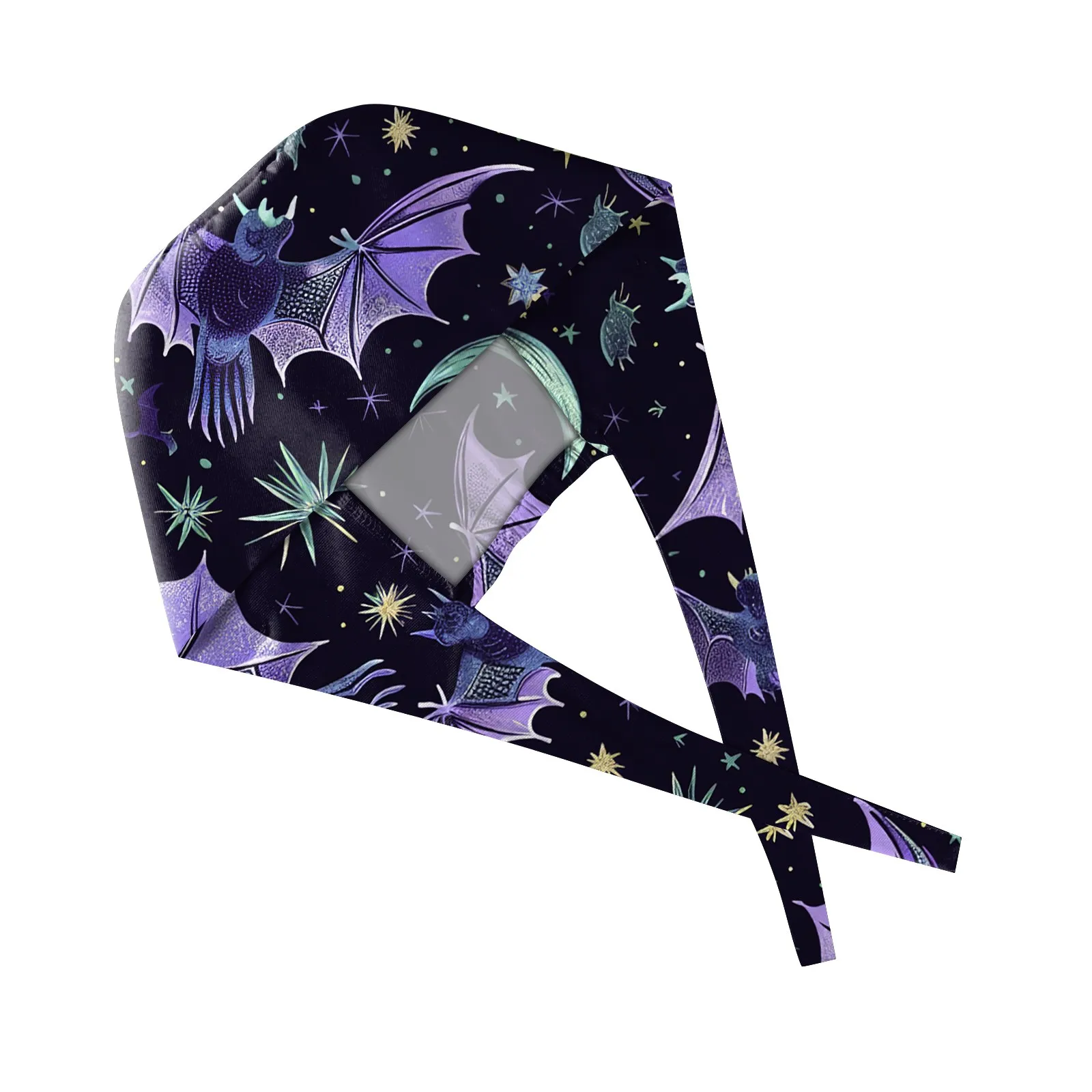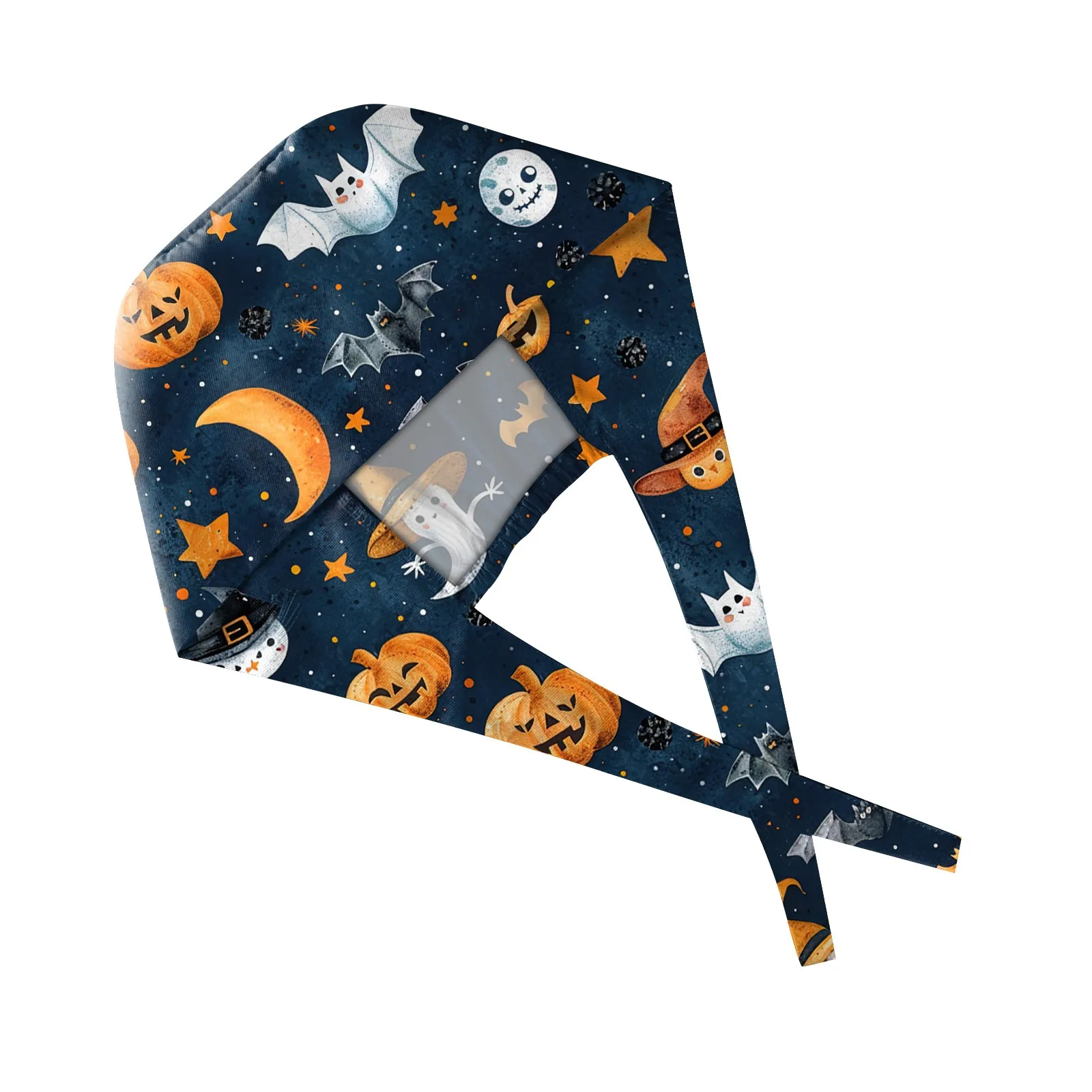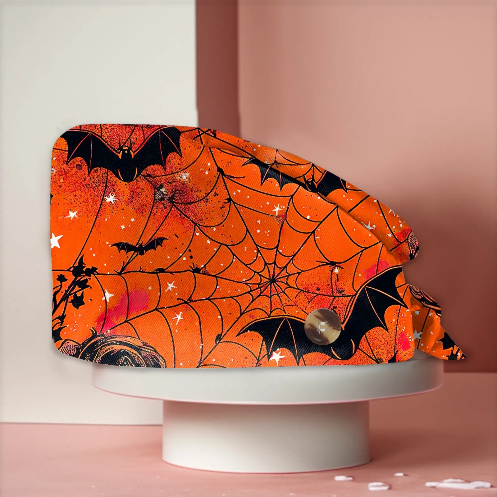 Halloween Print Work Cap Fashionable Casual Women's Printed Elastic Scrub Hat Unisex Work Caps Nurse Accessories Nurse Cap