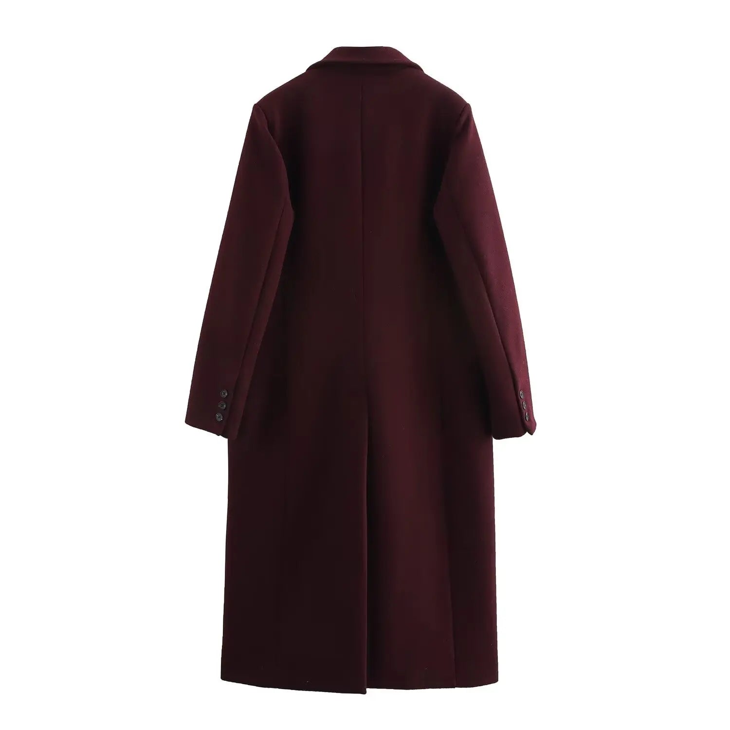 HH Female Autumn Winter Fashion Woolen Long Coat Woman Casual Turn-Down Collar Long Sleeves Pockets Double Breasted Coat