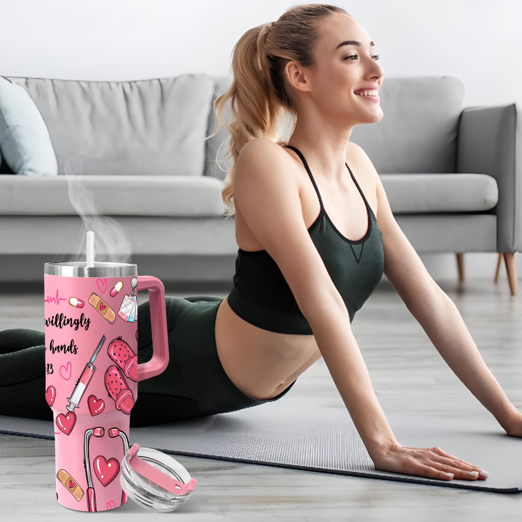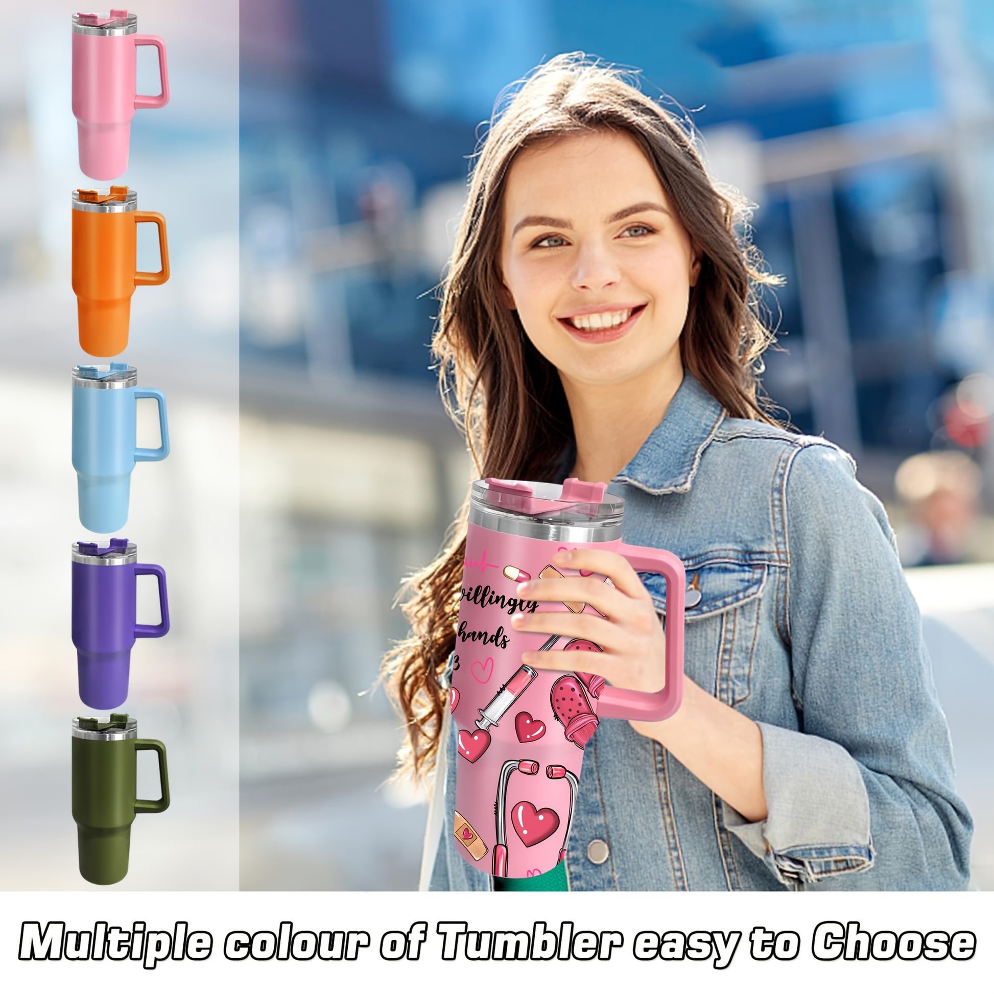 Hsdiokl Nurse-Themed 40oz Metal Tumbler with Lid, Hand Wash Reusable Oval-Shaped Mug, BPA-Free, Shatterproof, Multipurpose, Ideal for Christmas, Halloween, Easter, Hanukkah, Thanksgiving, Adult Gift - 1pc
