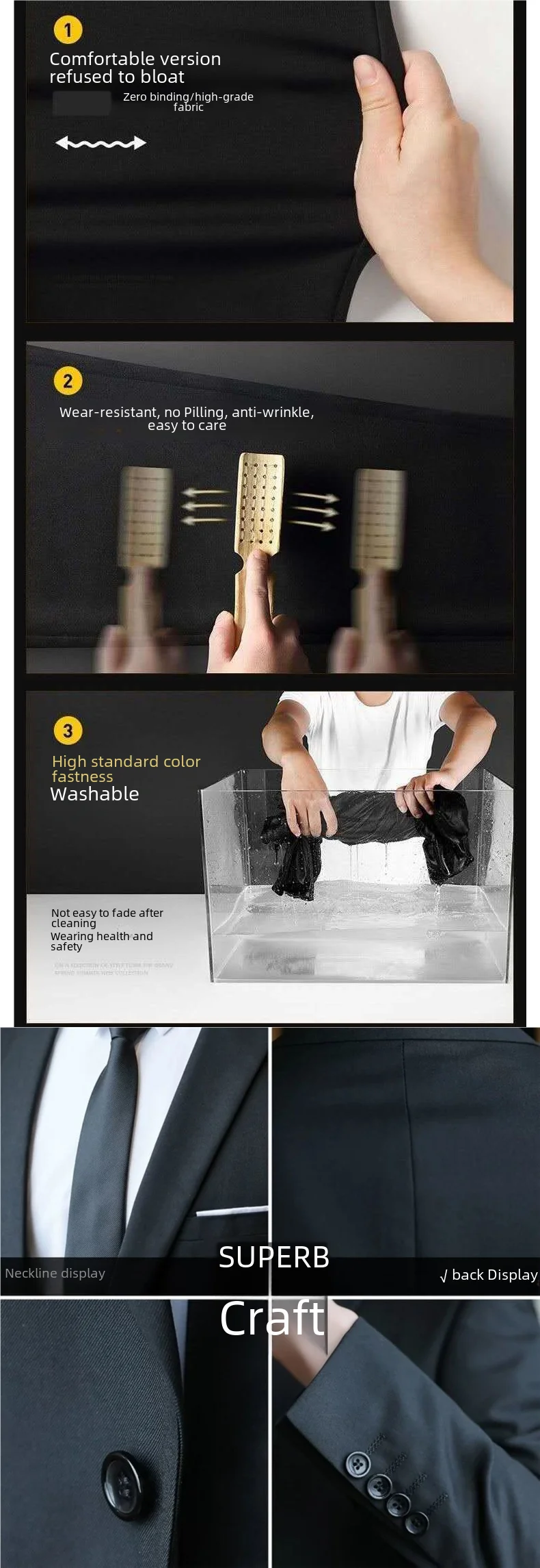 • Slim-Fit Design :This suit is designed with a slim-fit cut, accentuating your figure and making you look more professional and stylish.