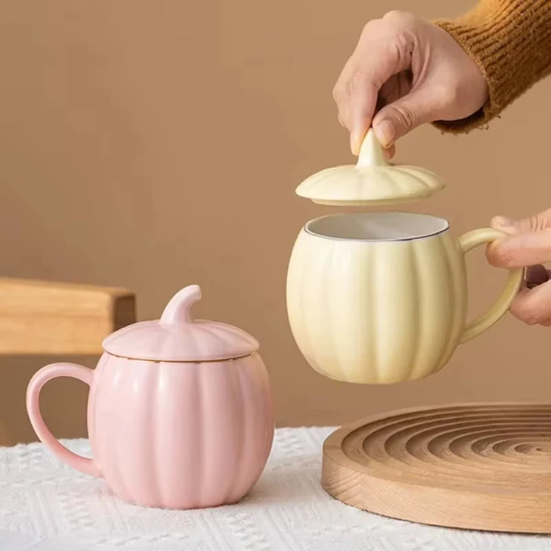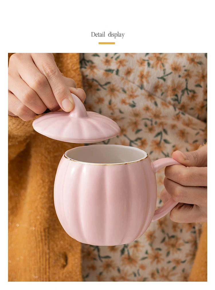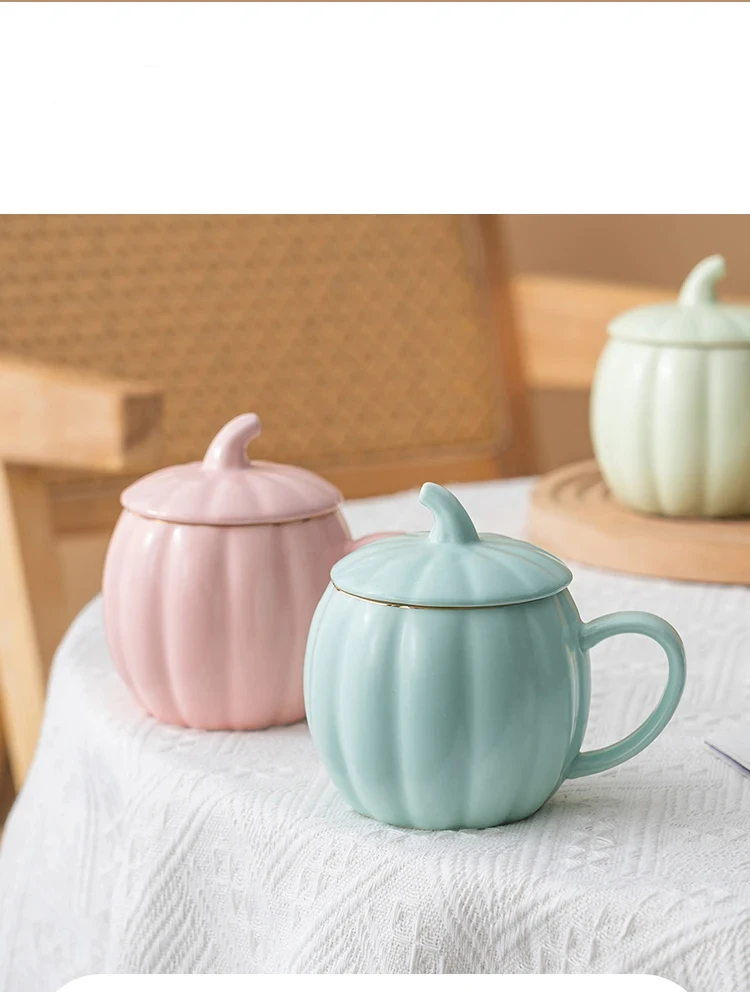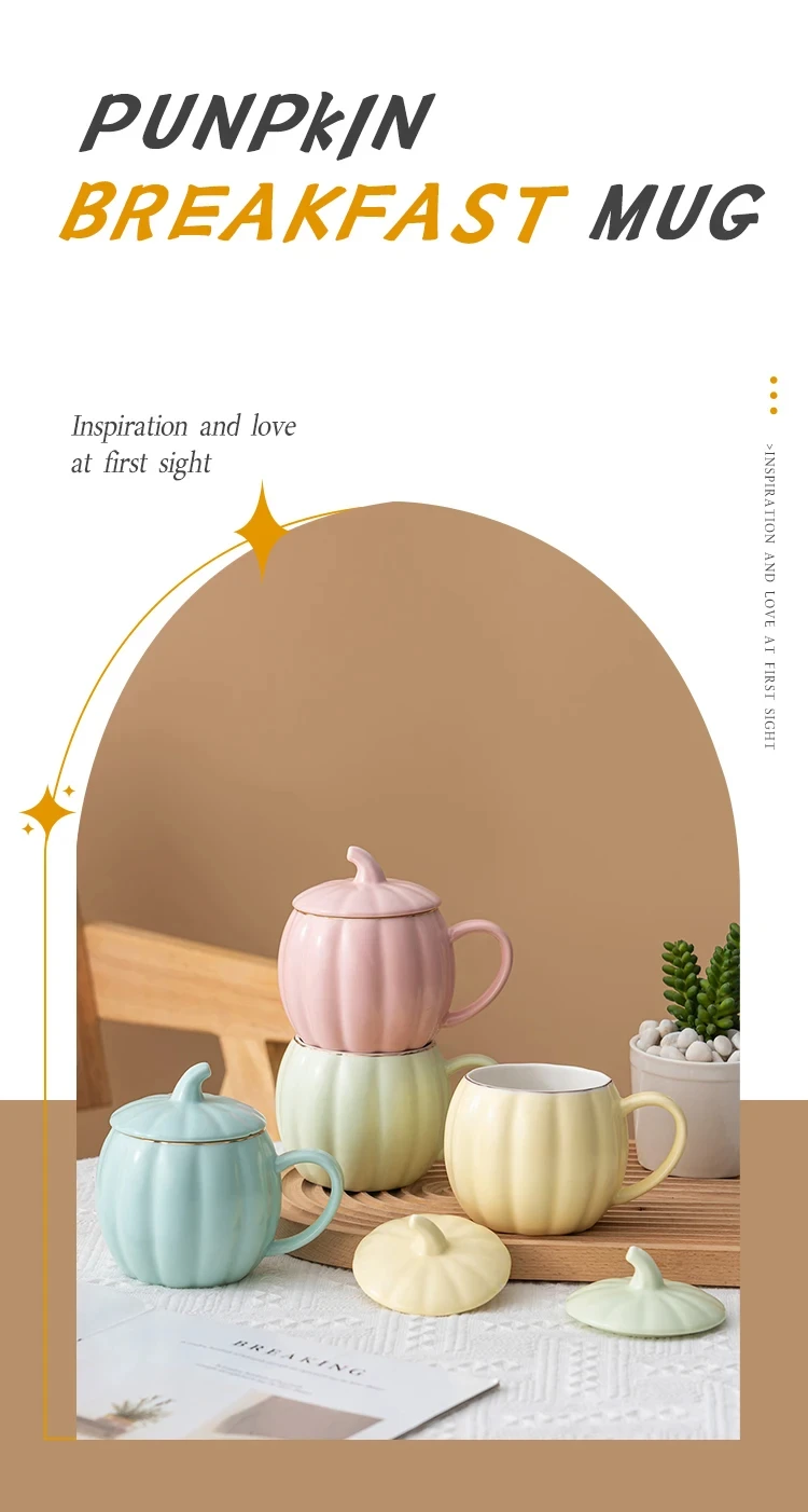 Multicolored Pumpkin Breakfast Mug Household Water Cup Ceramic Coffee Cups with Lid High Beauty Couple Oat Mugs Drinkware