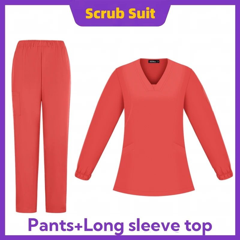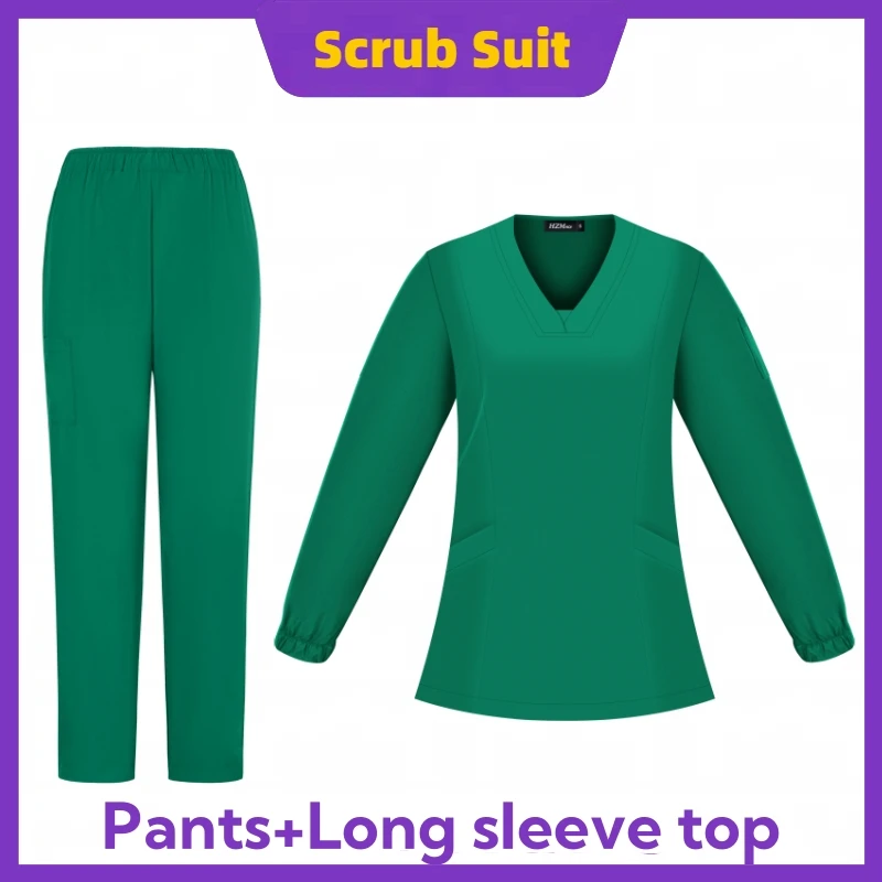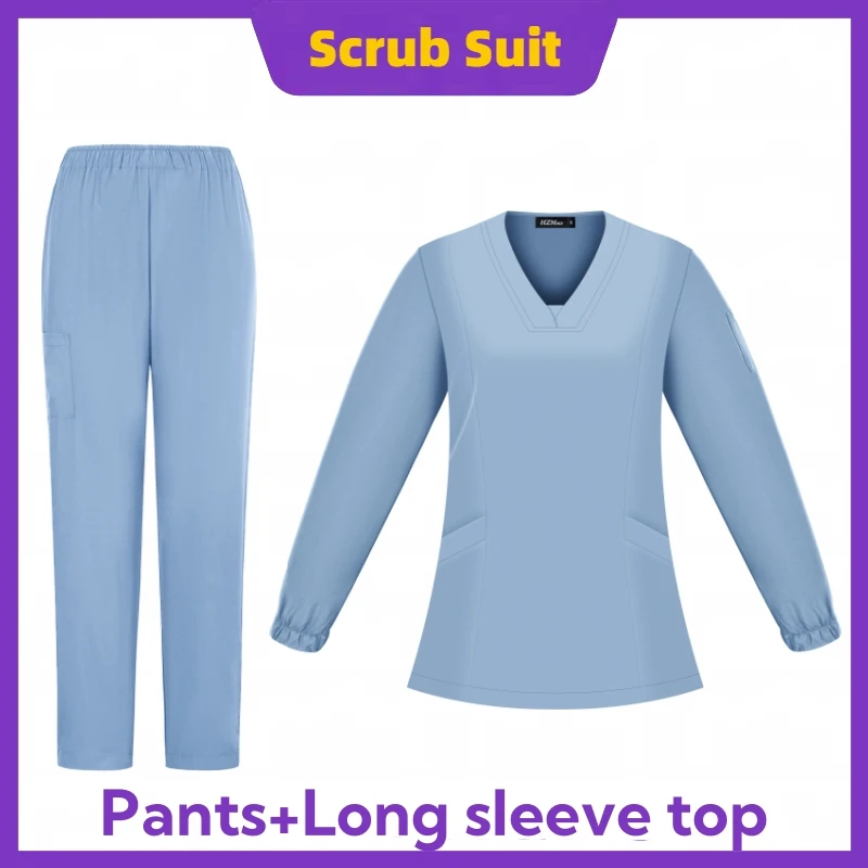 NEW Scrub Tops Pants V-neck Surgical Uniform Long Sleeved Surgery Clothes Suit Pet Grooming Nursing Scrub Set Dentistry Workwear