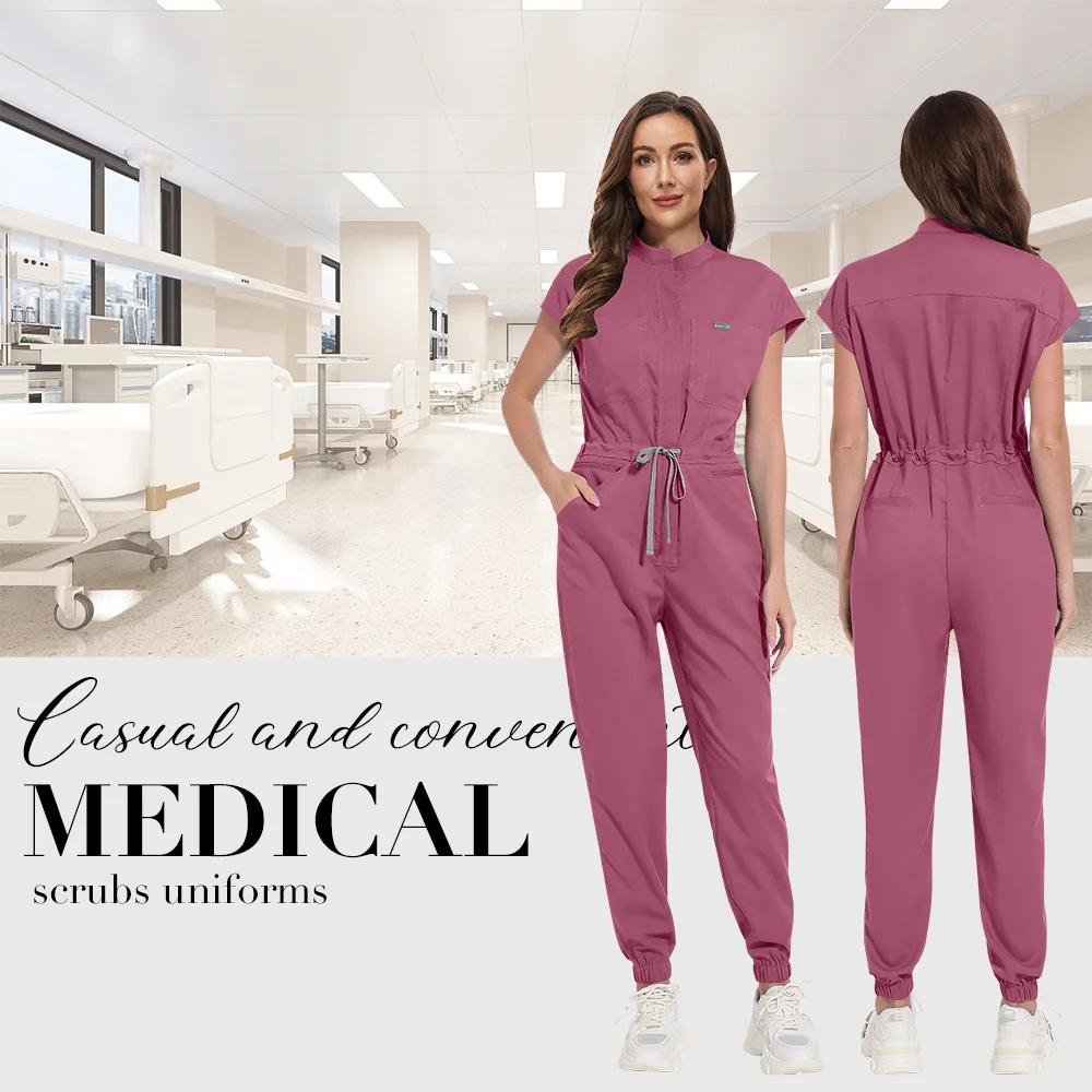 Niaahinn Zipper Neck Lab Jumpsuit Pet Grooming Nurse Uniform Onesie Short Sleeved Scrubs Workwear Health Service Nursing Clothes