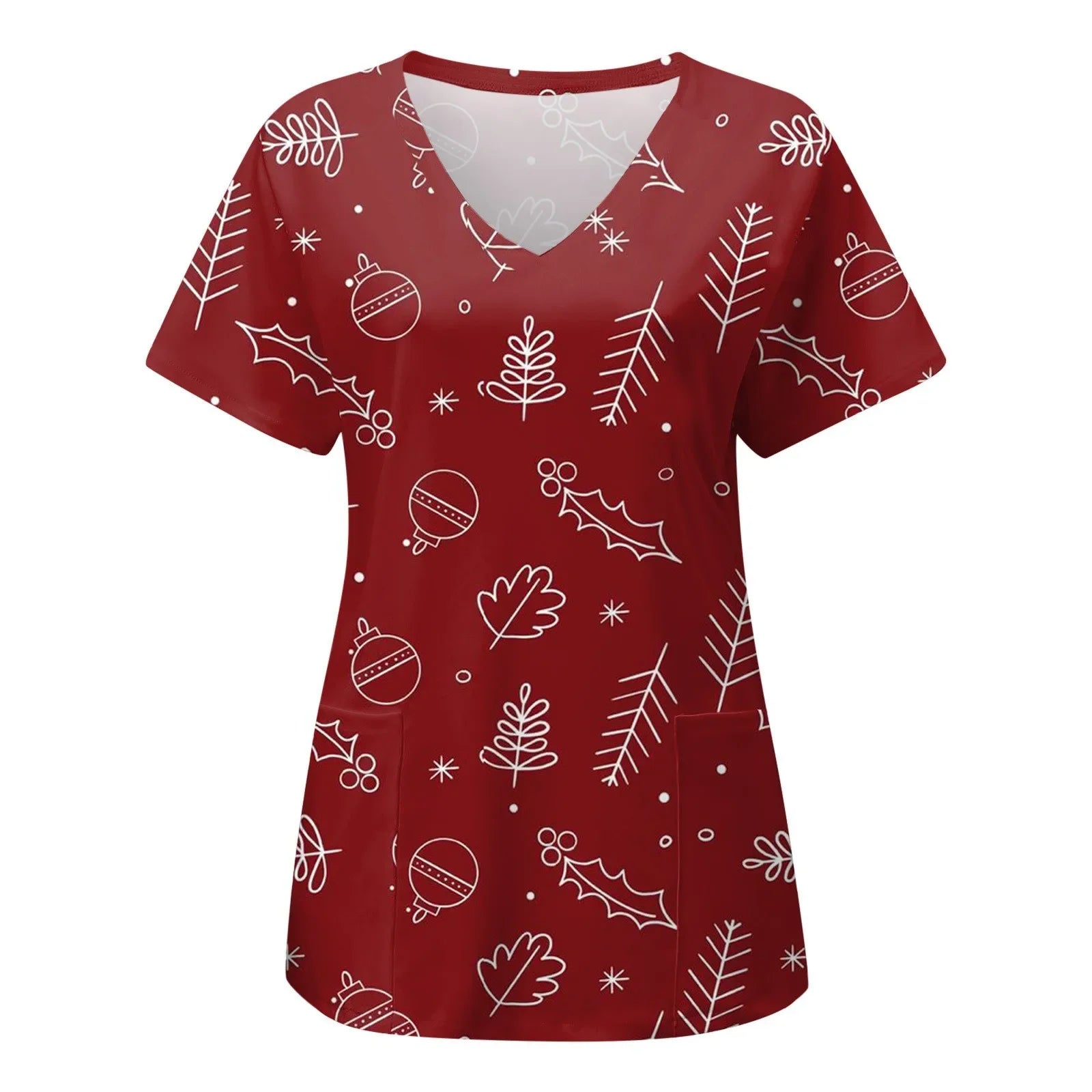 Nurse Uniforms Women Merry Christmas Print Short Sleeve Stitch Scrubs Working Medical Blouse Overalls Uniforms Medical Nursing