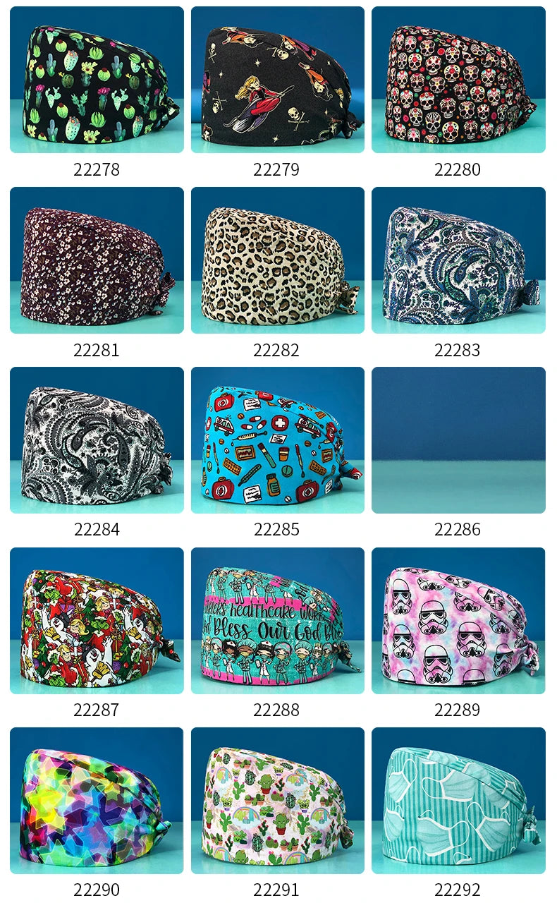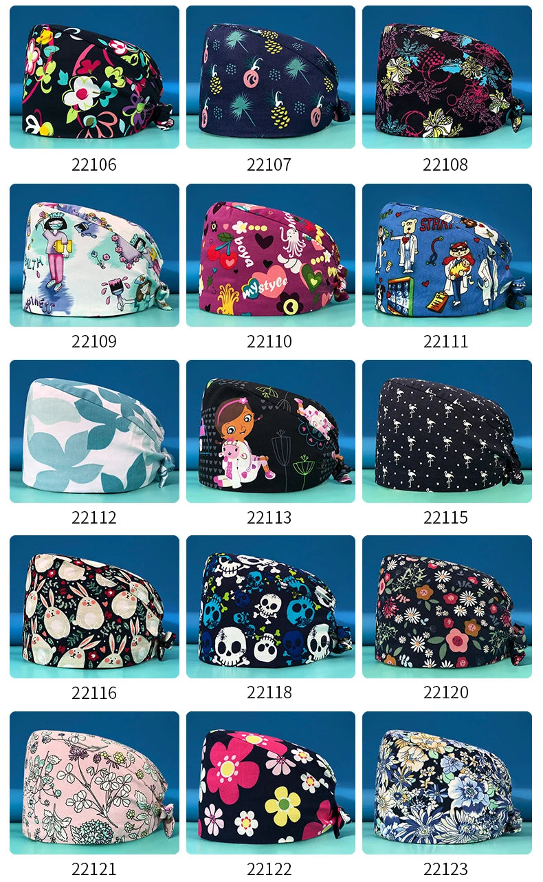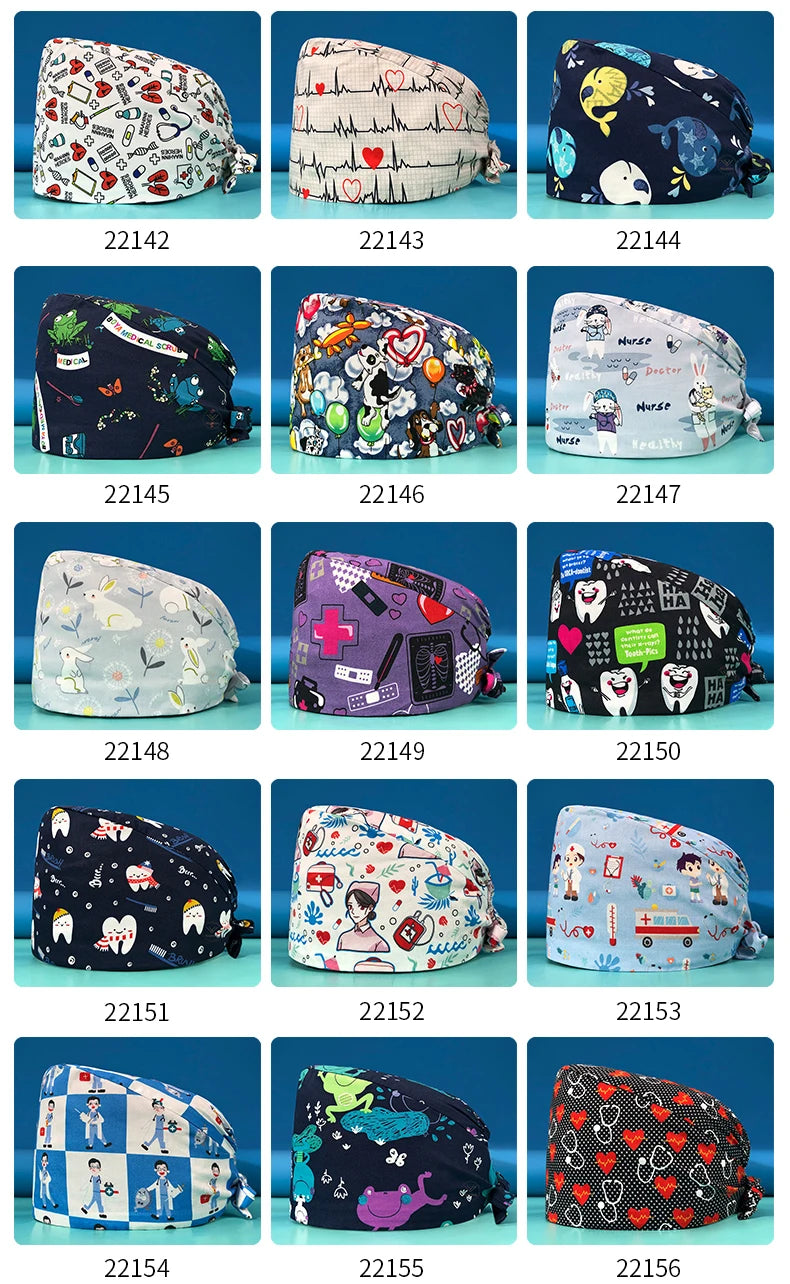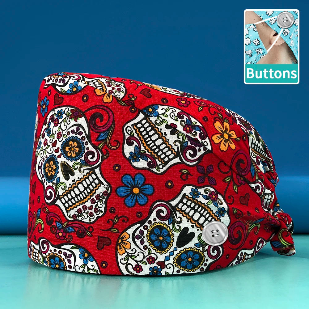 Pill Capsule Pattern Pink Scrubs Cap Female Nurse Medical Clinic Accessories Women's Operating Room Hat with Buttons Cotton Hats