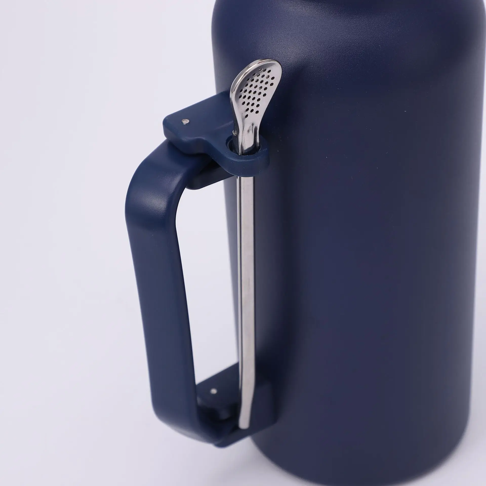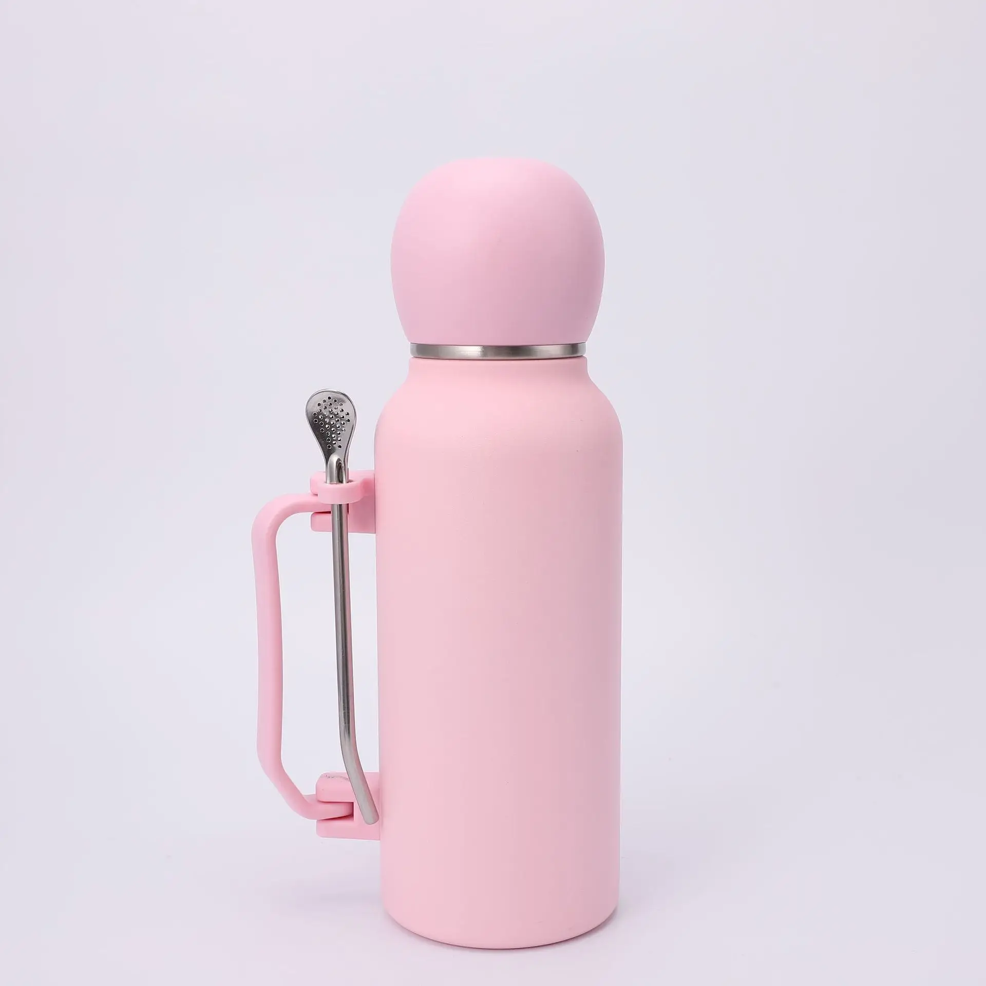 Portable and simple car cup with spoon, large-capacity solid-color handle cup 304 stainless steel outdoor double-layer insulated cup