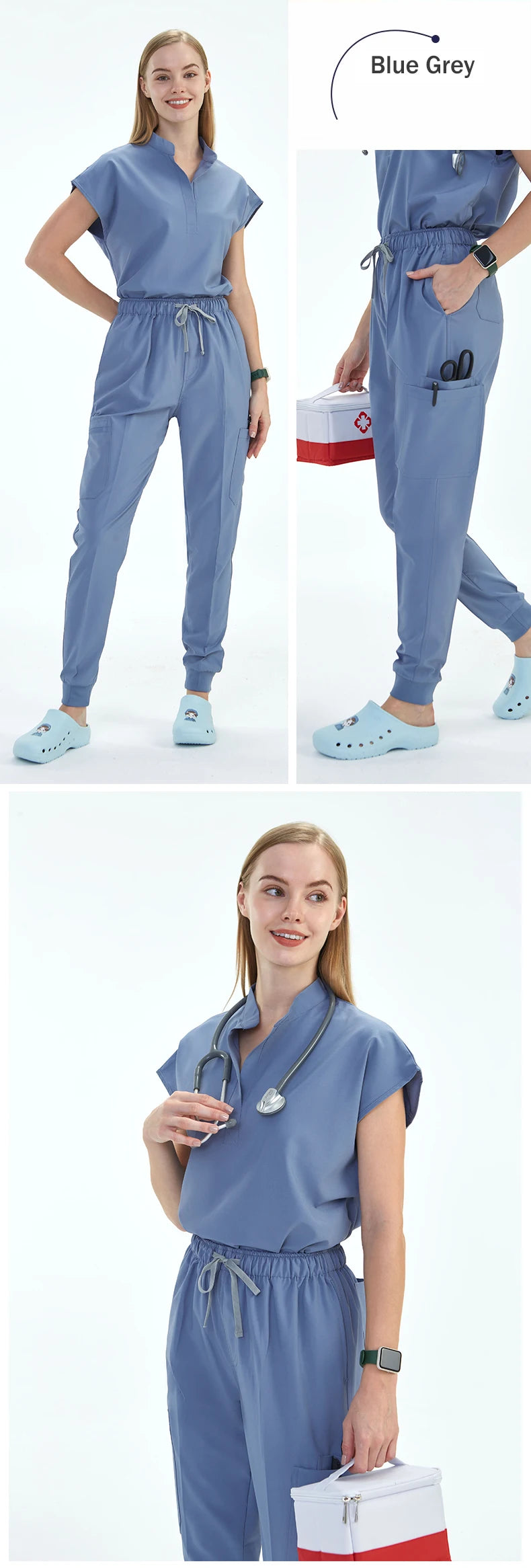 Premium Women's Scrub Sets Mandarin Collar Nurse Uniform Doctor Clothes Tunic Jogger Pant Surgical Scrubs Outfit 10 Pockets S180