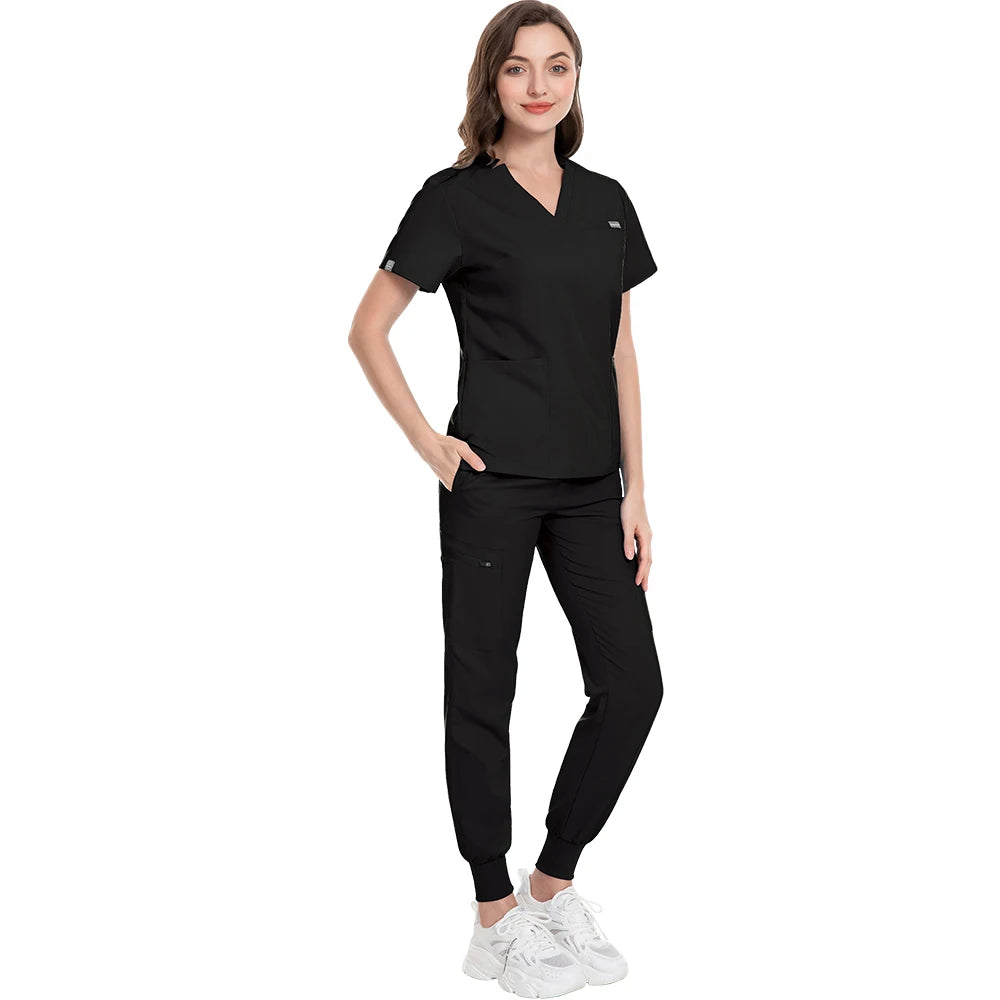 Multicolour Jogger Suits Doctor Nursing Uniforms Short Sleeve V-neck Tops Pocket Pants Nurse Scrubs Set Medical Clinical Clothes