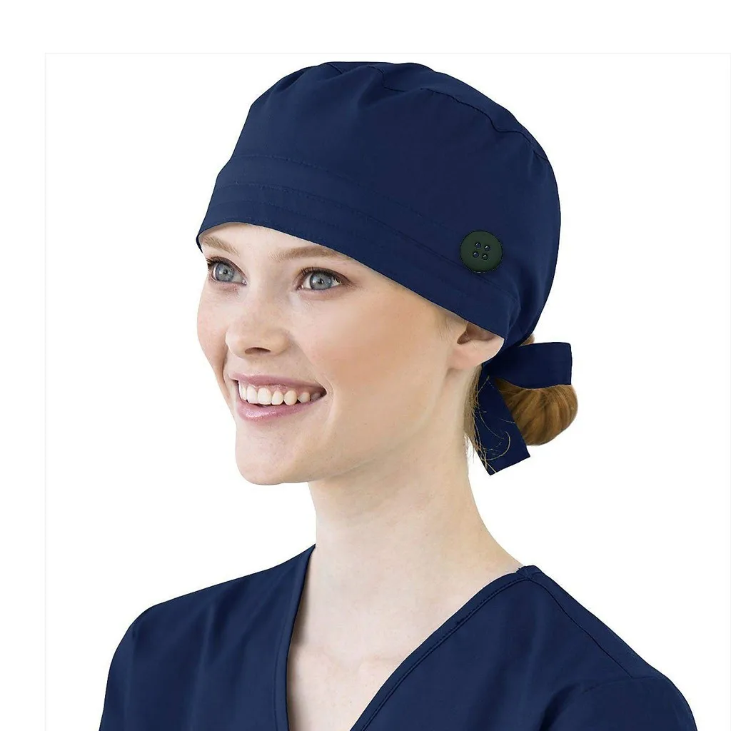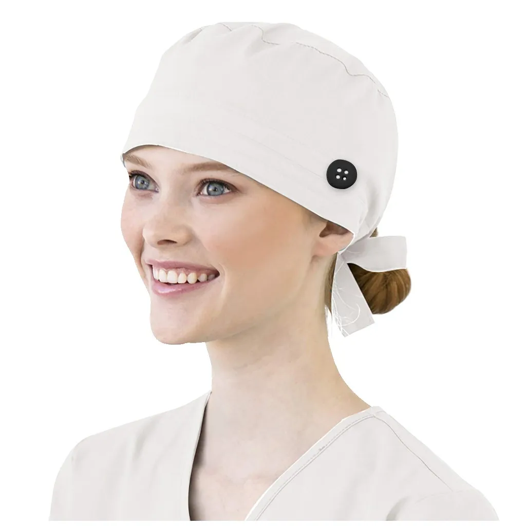 Solid Color Scrubs Caps With Button Pet Grooming Agency Work Scrubs Beauty Work Hats Lab Nursing Scrubs Cap Gorro Enfermera