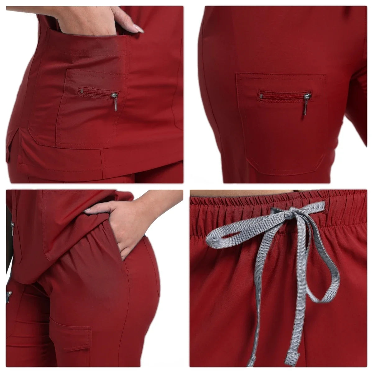 Surgical Uniforms Woman Medical Blouse Strechy Scrubs Top+pant Sets Medico Clothes for Doctors Nurses Clinical Medical Uniform