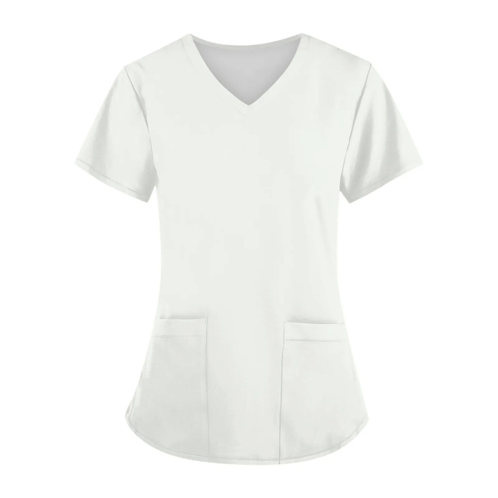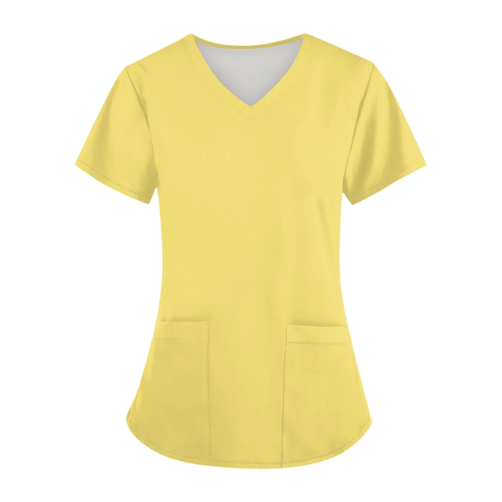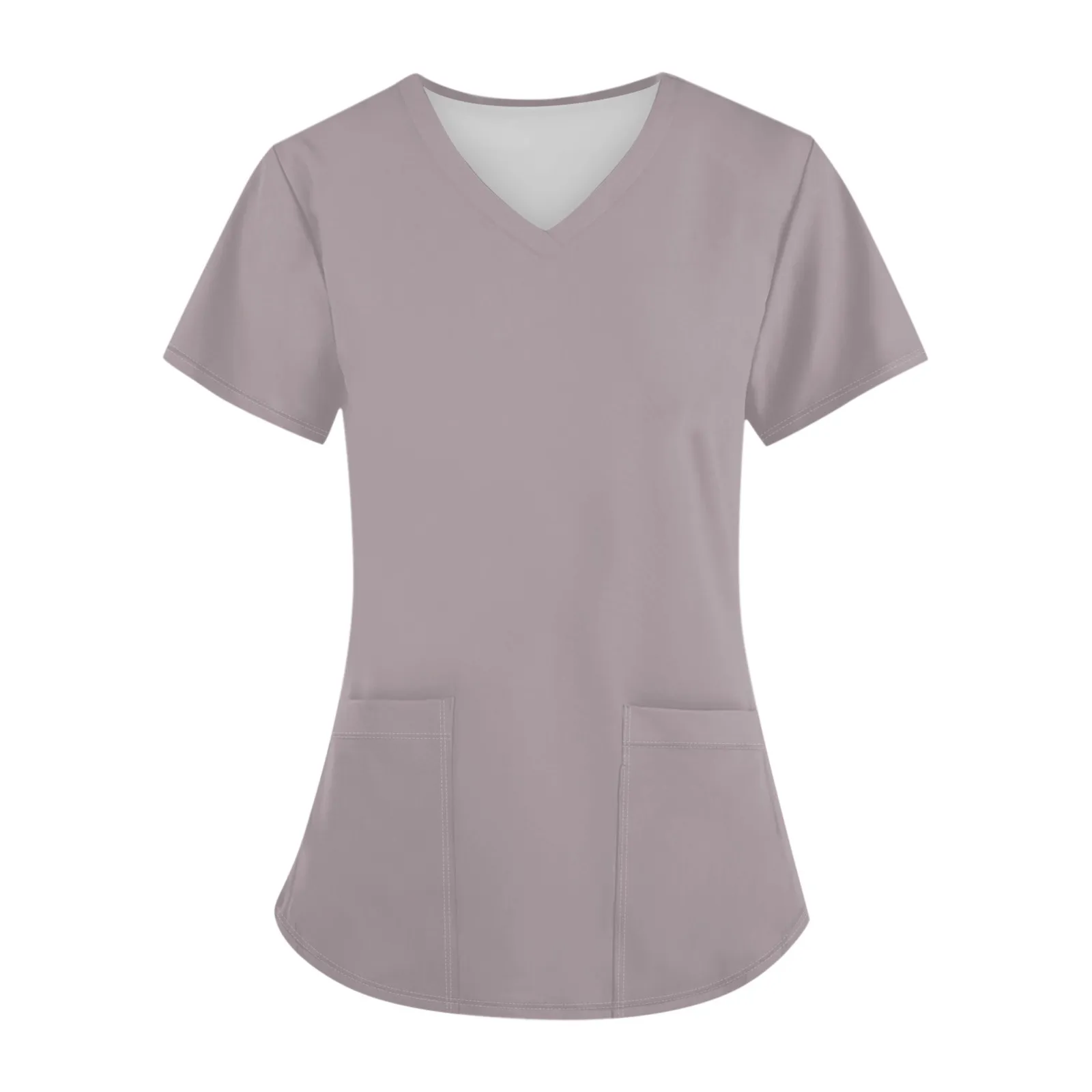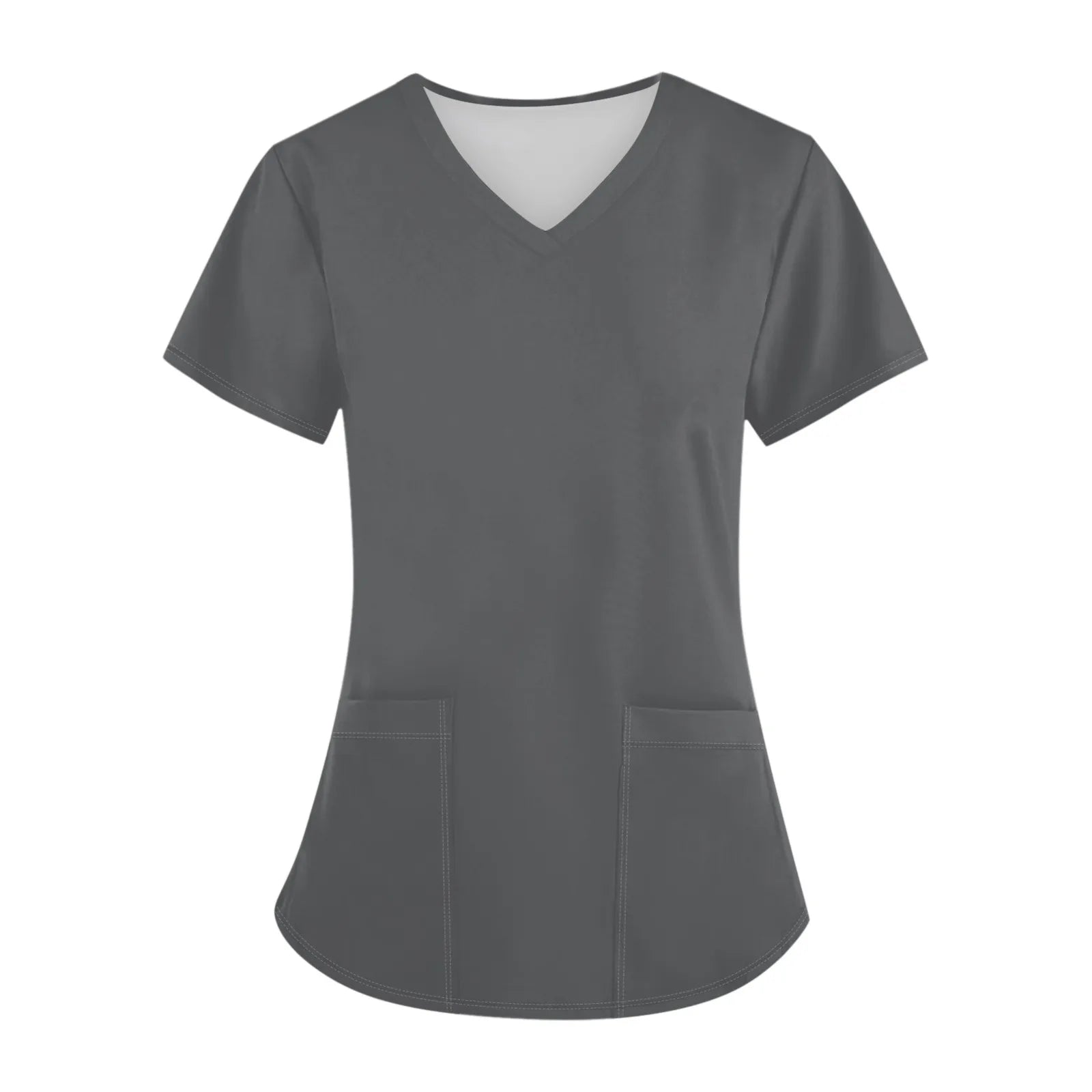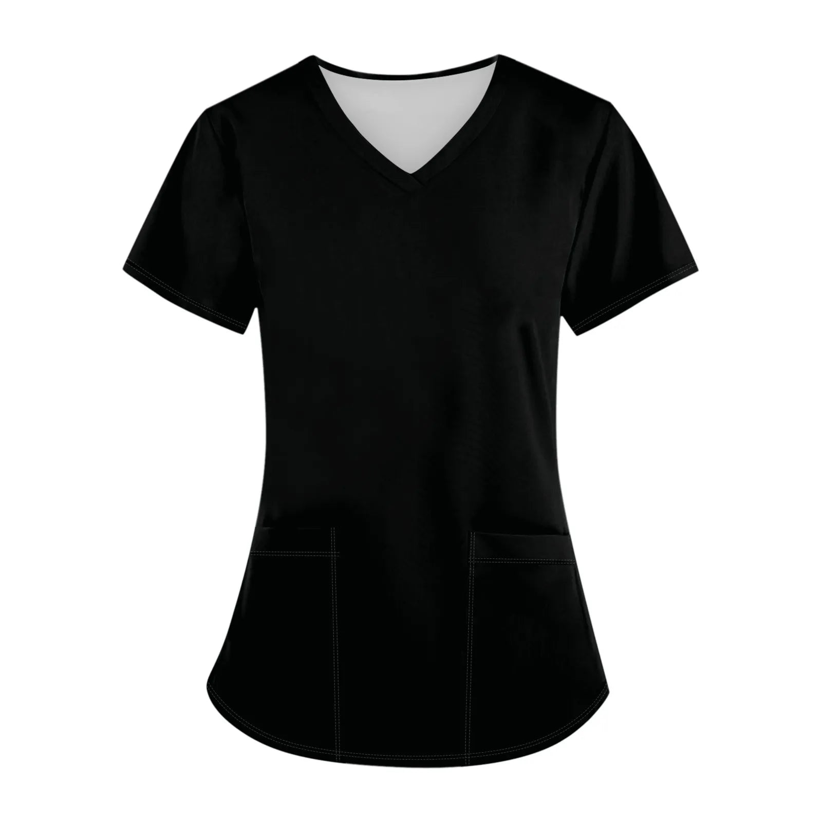 Plus SizePrinted Scrub Working Uniform Tops For Women's Cross V-Neck Halloween Print Short Sleeve Fun T-Shirts Workwear Tee With Pockets