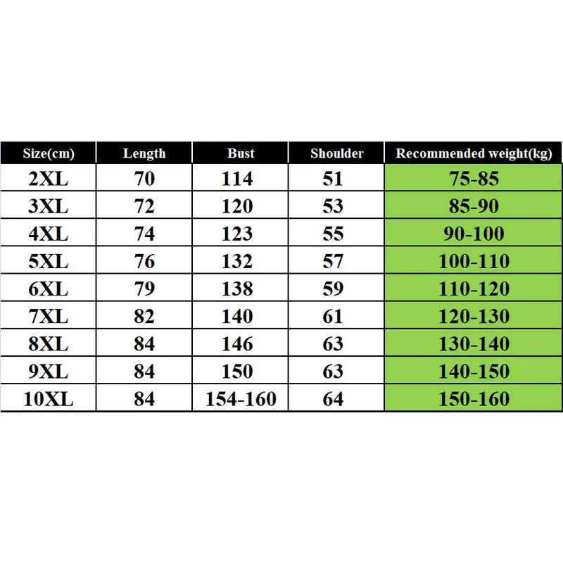 10XL Length:84 Bust:154-160 Shoulder:64 Recommended weight(kg):150-160