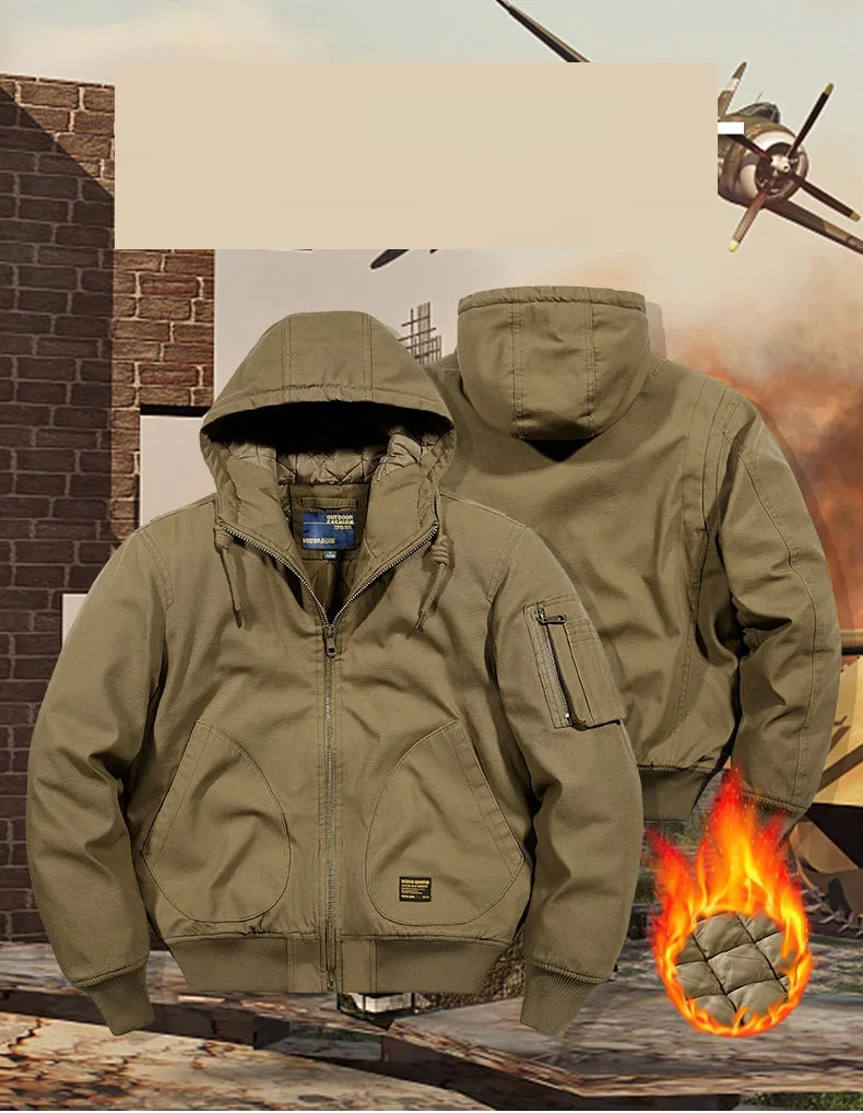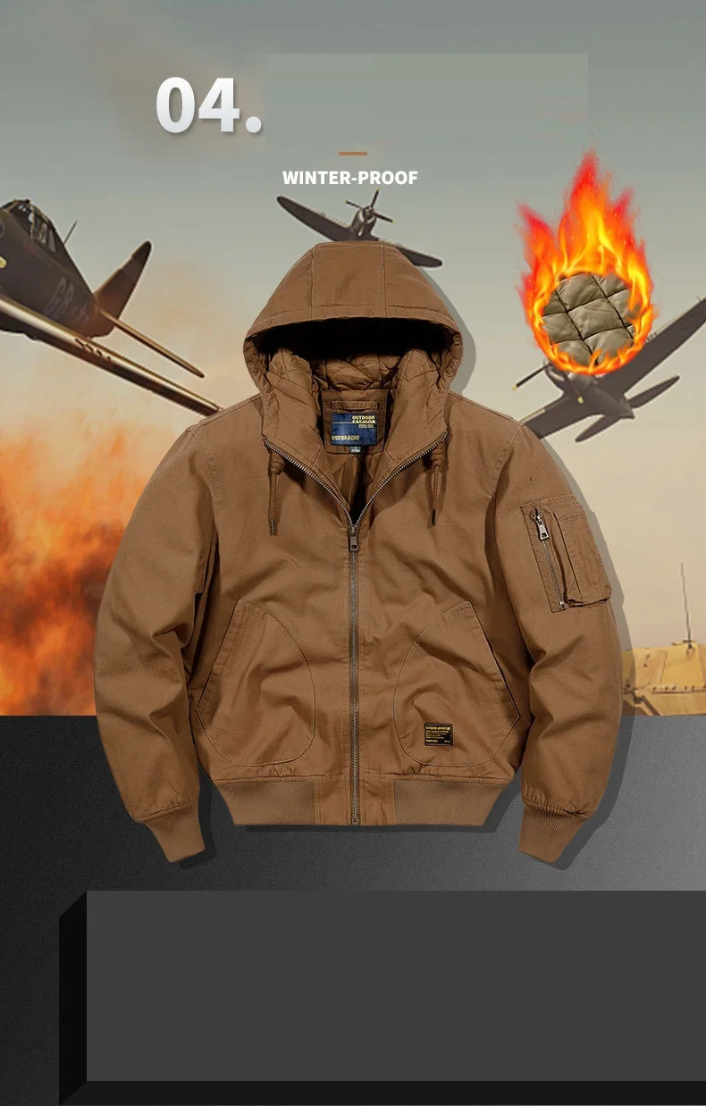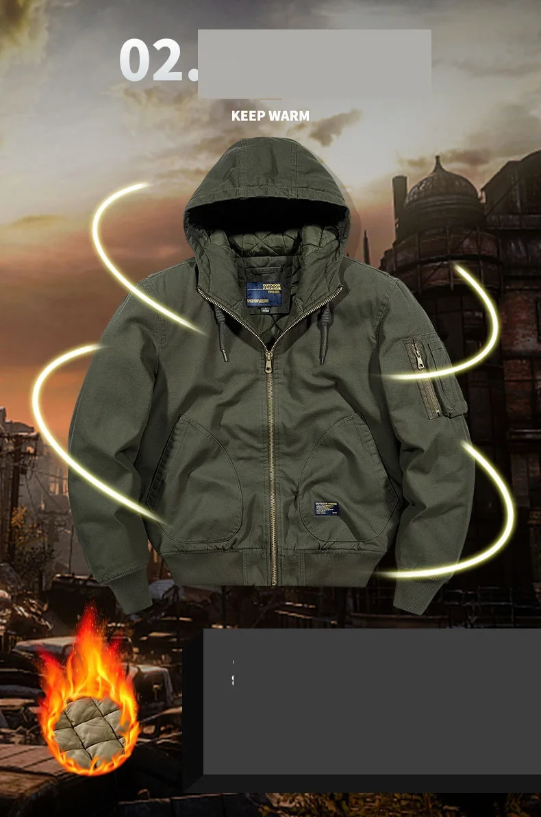 Winter Bomber Jacket 100% Cotton Hooded Warm Thick Overcoat Quilted Cotton Padded Tactical New Parkas Thermal Parkas Coats