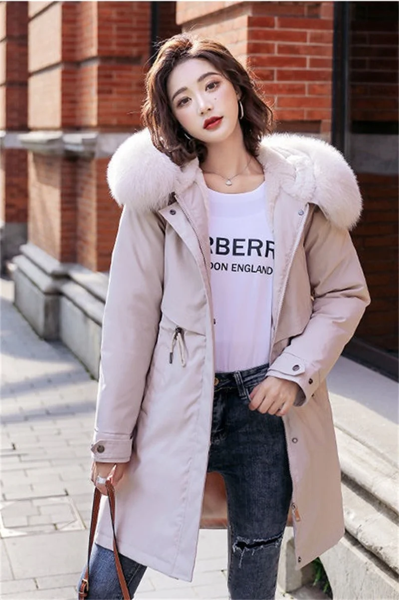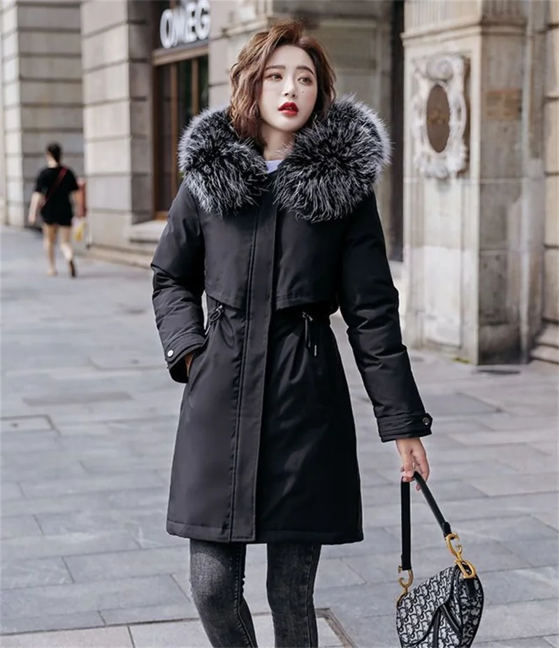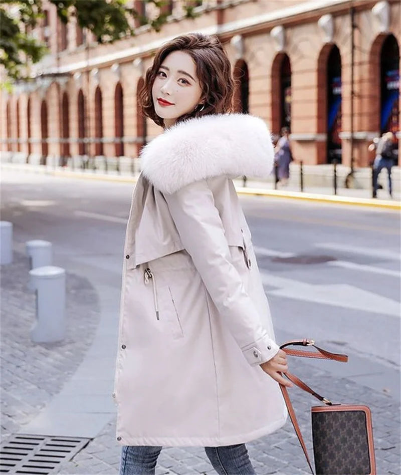 Winter Jacket New Women Parka Clothes Long Coat Wool Liner Hooded Jacket Fur Collar Thick Warm Snow Wear Padded Parka
