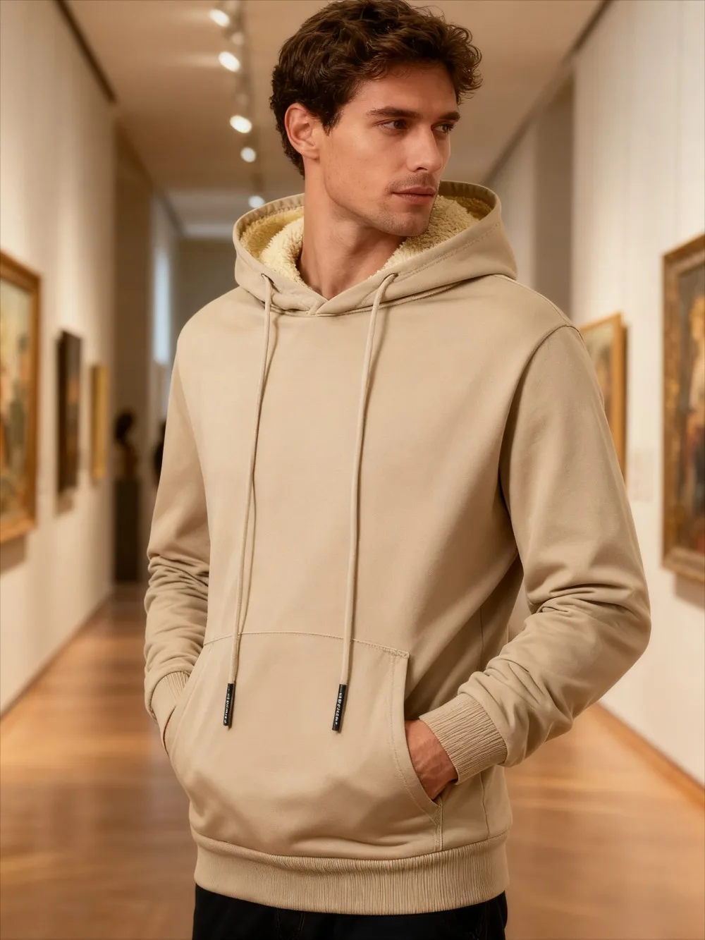 Winter Men's Fleece Hoodies Solid Color Casual Warm Long Sleeve Pullover New Crew Neck Hooded Sweatshirt Streetwear Men Clothing