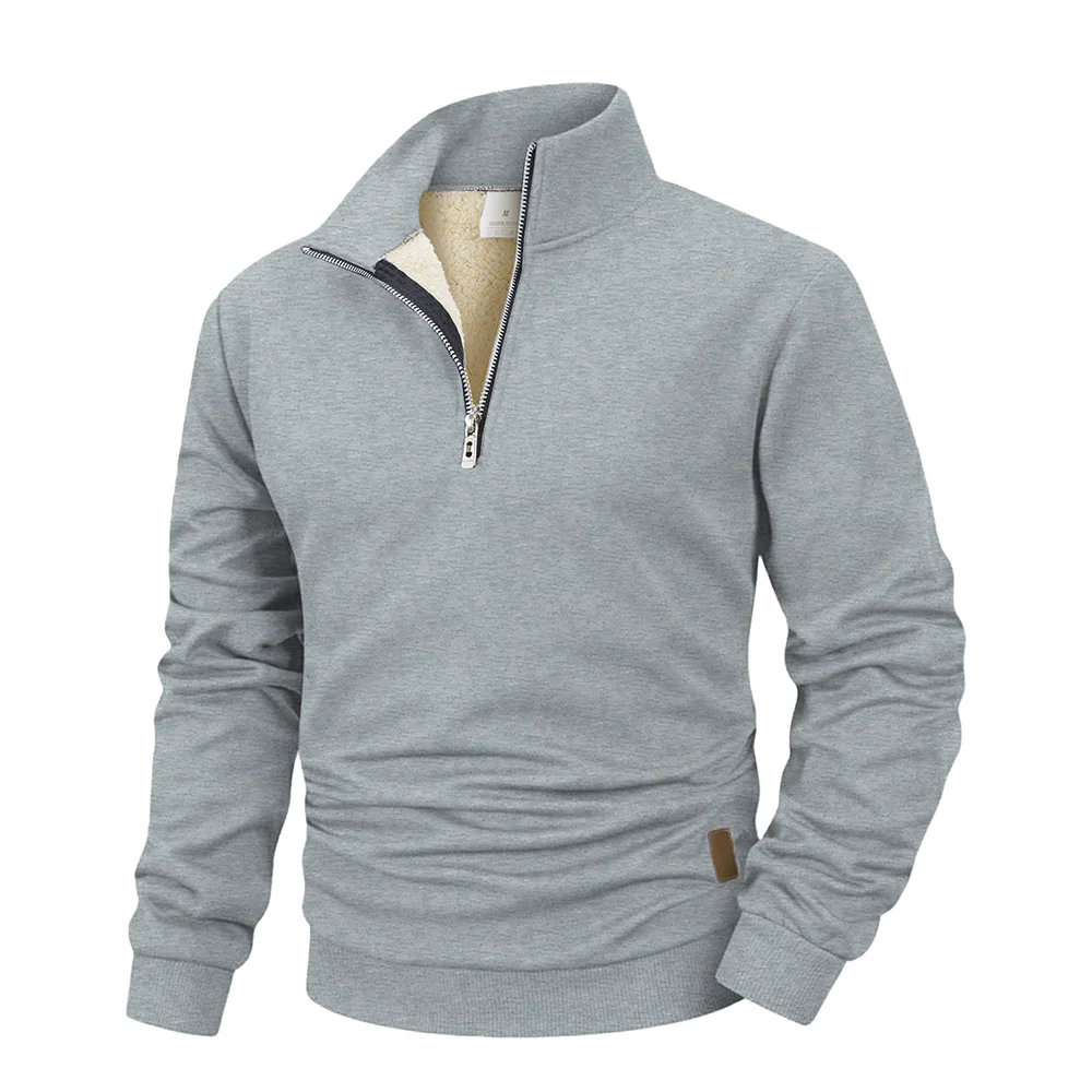 Winter Men's Warm Fleece Thicken Long Sleeve Pullover Solid Color Half Zipper Sweatshirt Knitted Sweater Streetwear Jacket Top