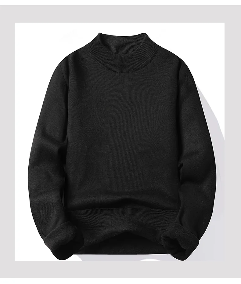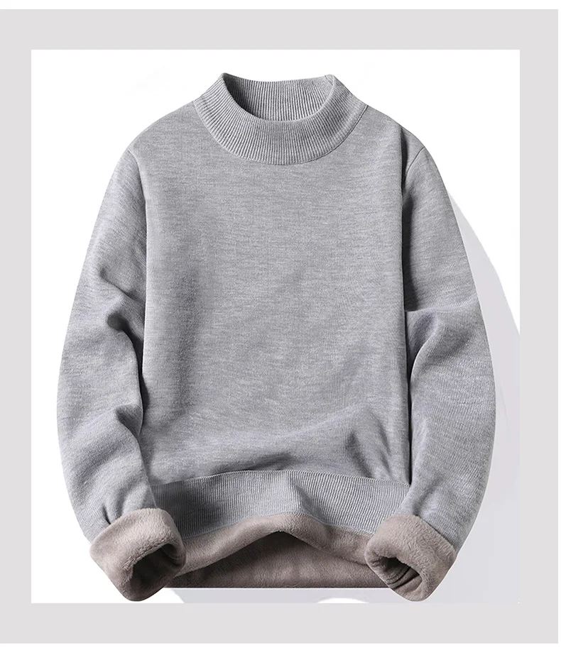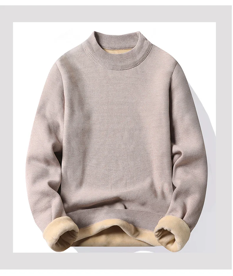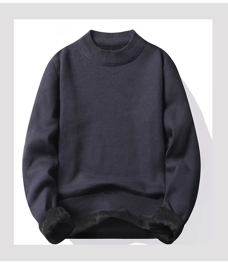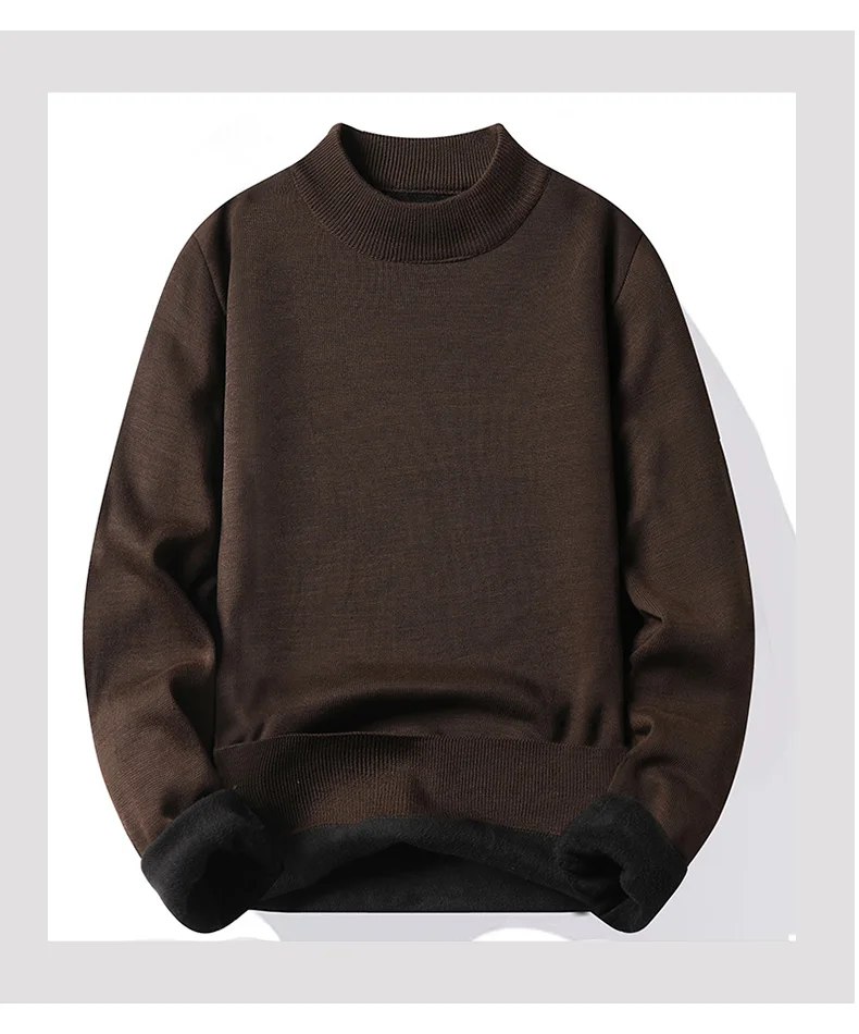 Winter New Men's Knitted Sweater with A Half High Collar Solid Color Plush and Warm Knitted Lining Top Casual and Versatile Top