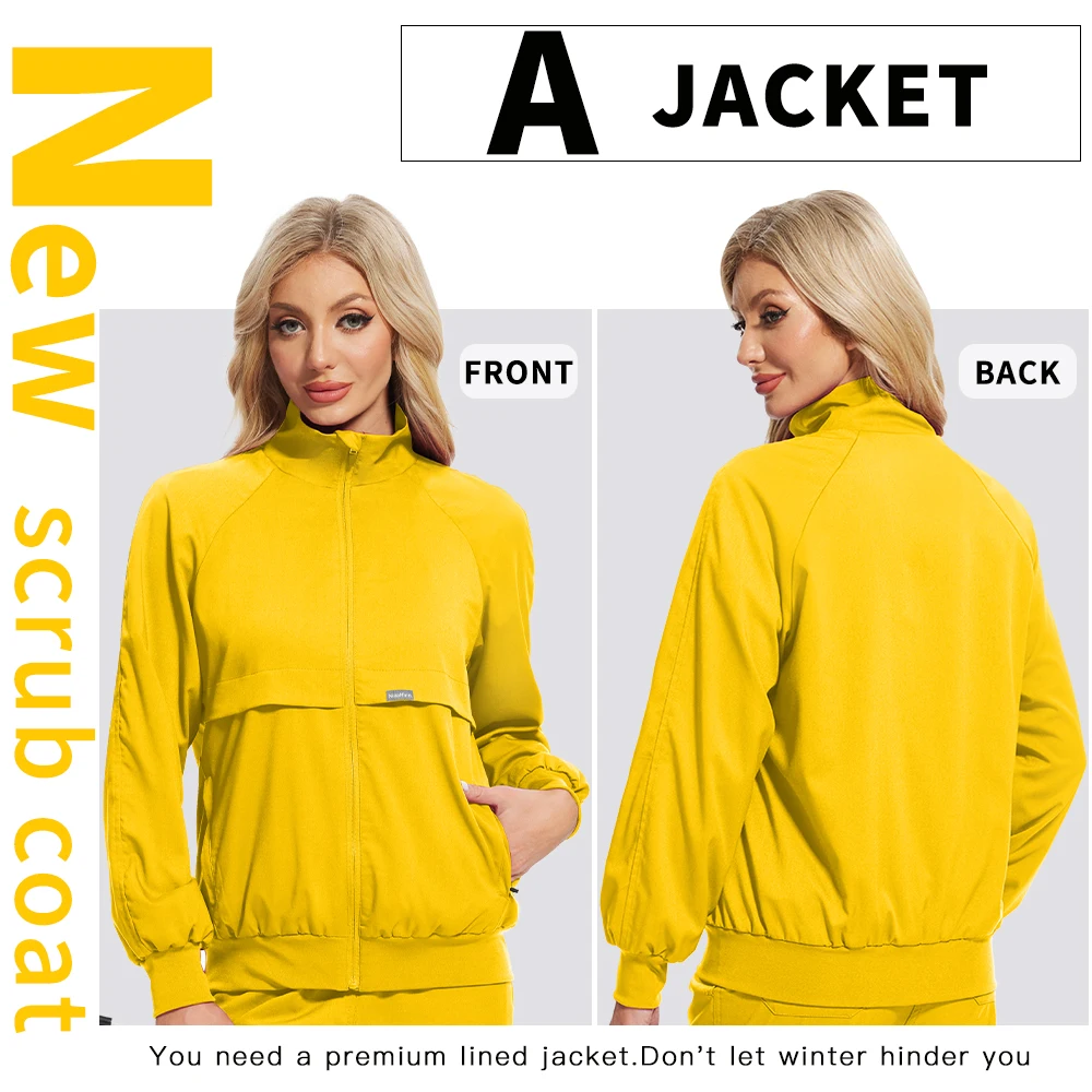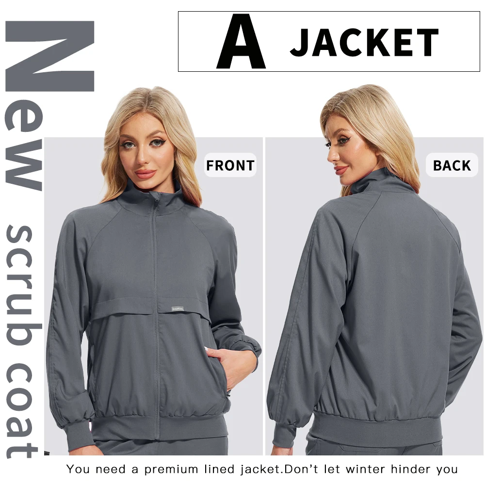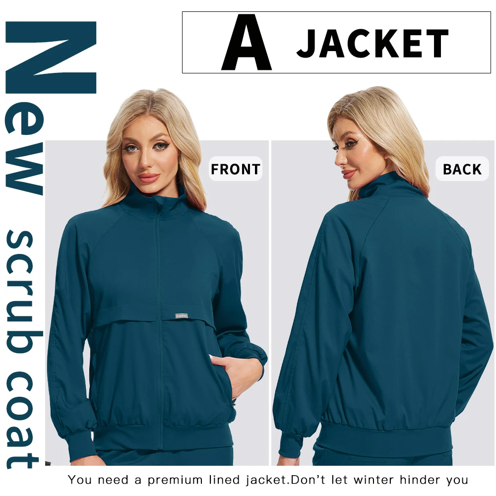 Women Men's Spring Autumn Soft Long Sleeve Jacket Medical Clinical Nurse Coats Hospital Pharmacy Work Top Pocket Dentist Outwear