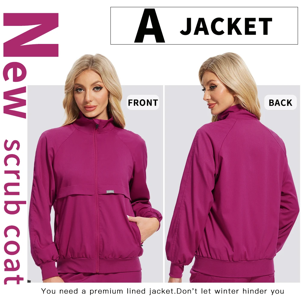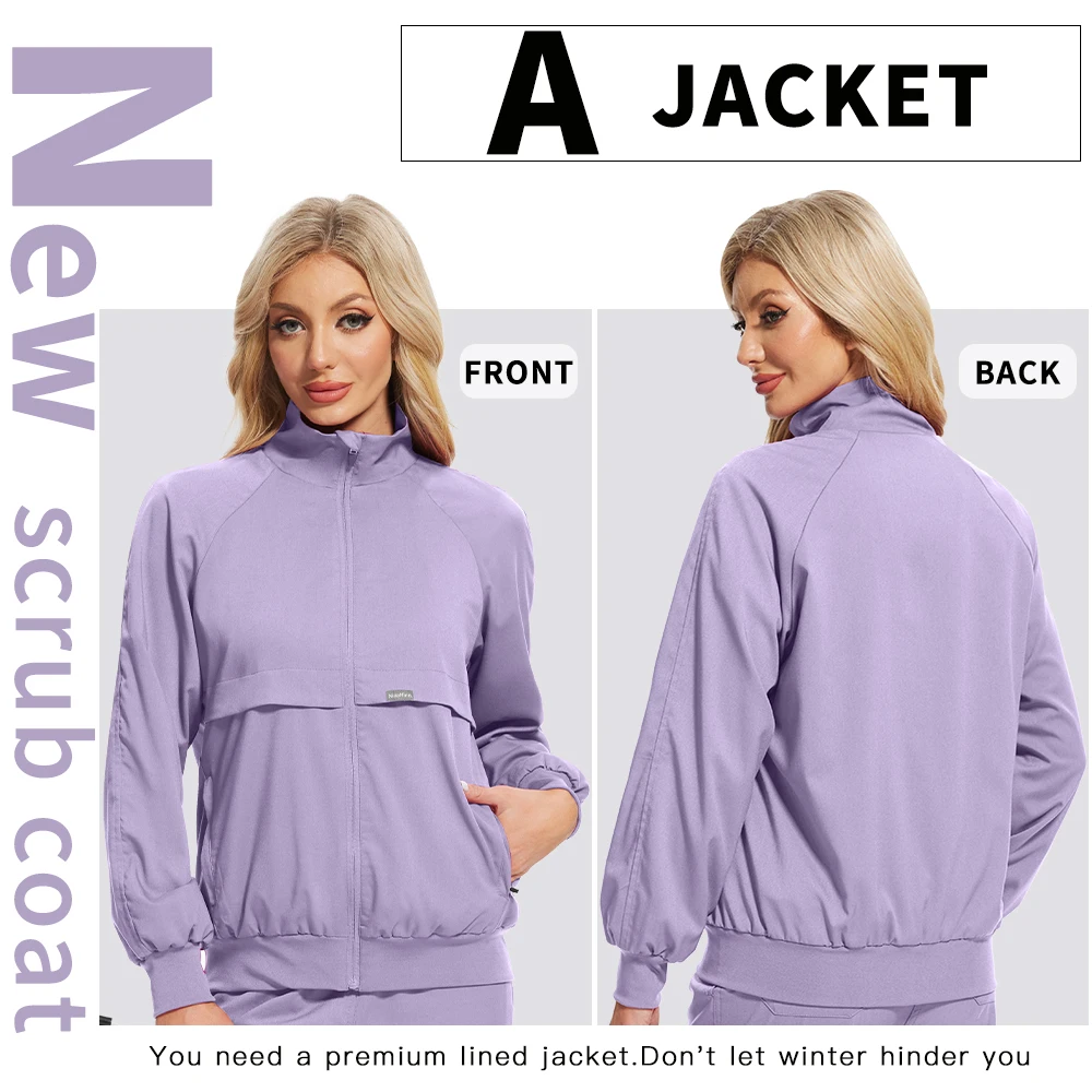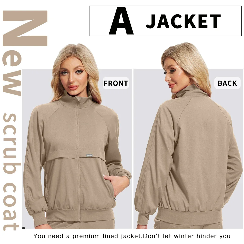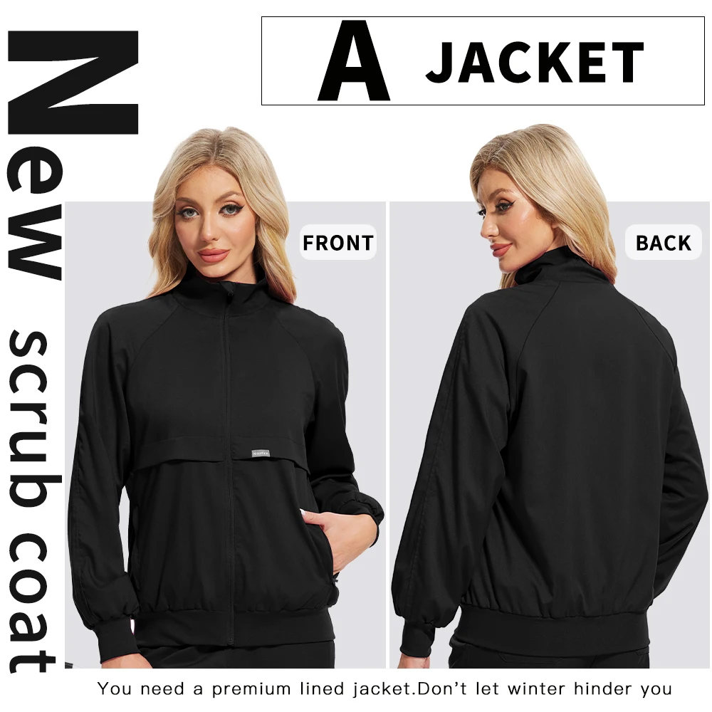 Women Men's Spring Autumn Soft Long Sleeve Jacket Medical Clinical Nurse Coats Hospital Pharmacy Work Top Pocket Dentist Outwear