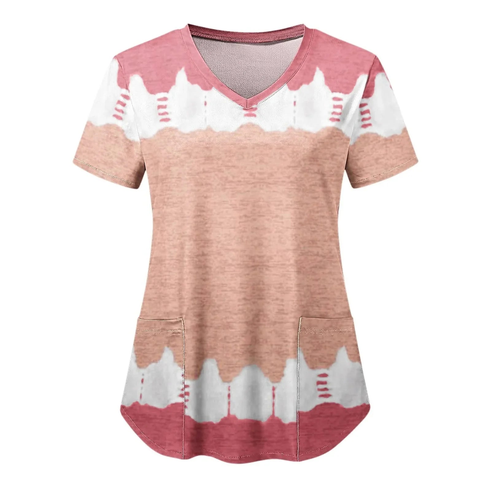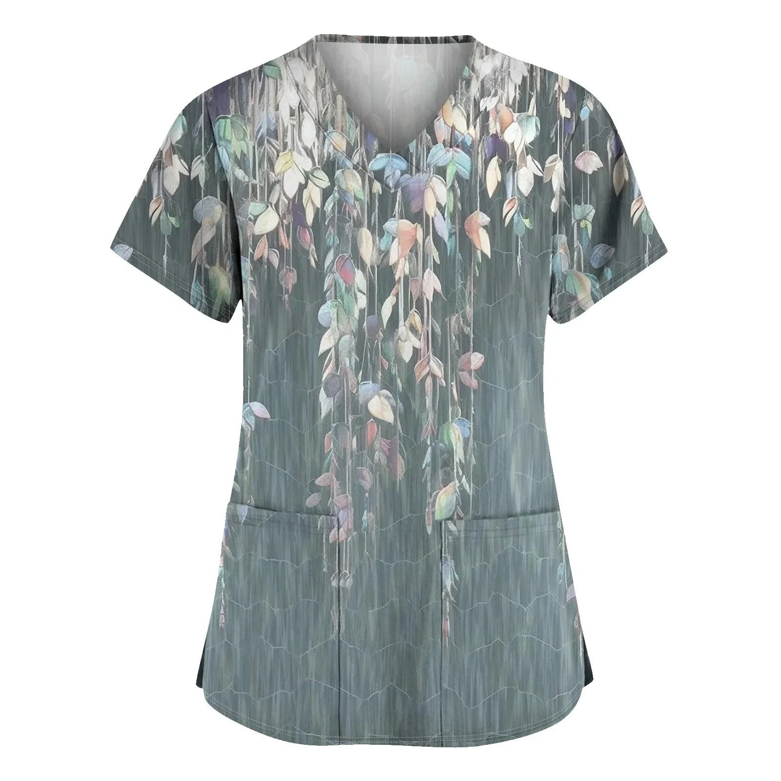 Women Nurse Uniform Medical Scrubs Flower 3d Print V-Neck Pocket Medical Uniforms Cartoon Nursing Scrubs Short Sleeve Pocket Loo