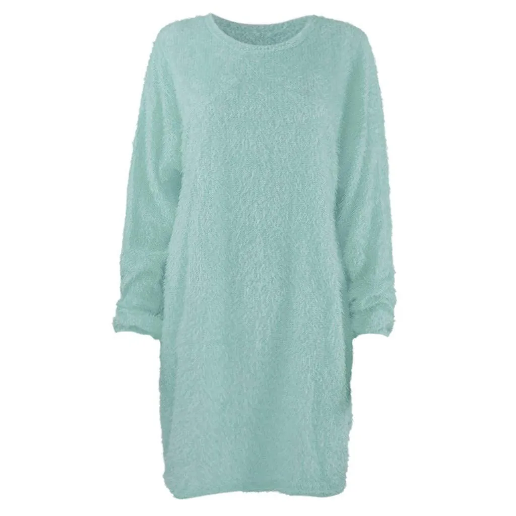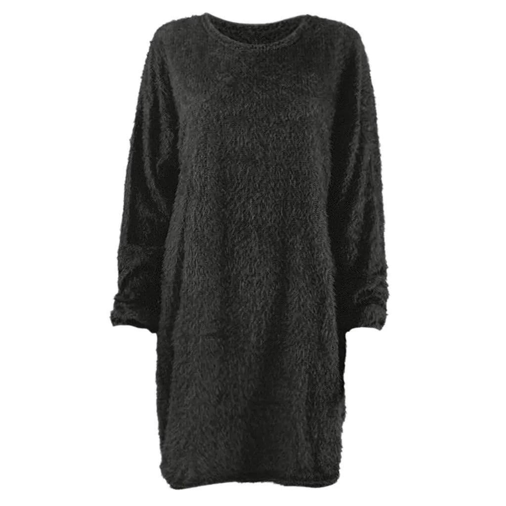 Women Winter Sweater Knit Crewneck Warm Long Sleeve O-Neck Casual Sweatshirts Dress Solid Color Oversized Basic Ladies Cloth